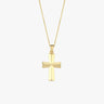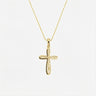 A timeless gold cross necklace, suitable for all ages, featuring a delicate cable chain with a secure spring ring closure. Crafted in your choice of 14K solid gold or gold plated over sterling silver, this classic piece includes a cross pendant measuring 20mm in height and 10mm in width. Perfect for daily wear or as a meaningful gift.