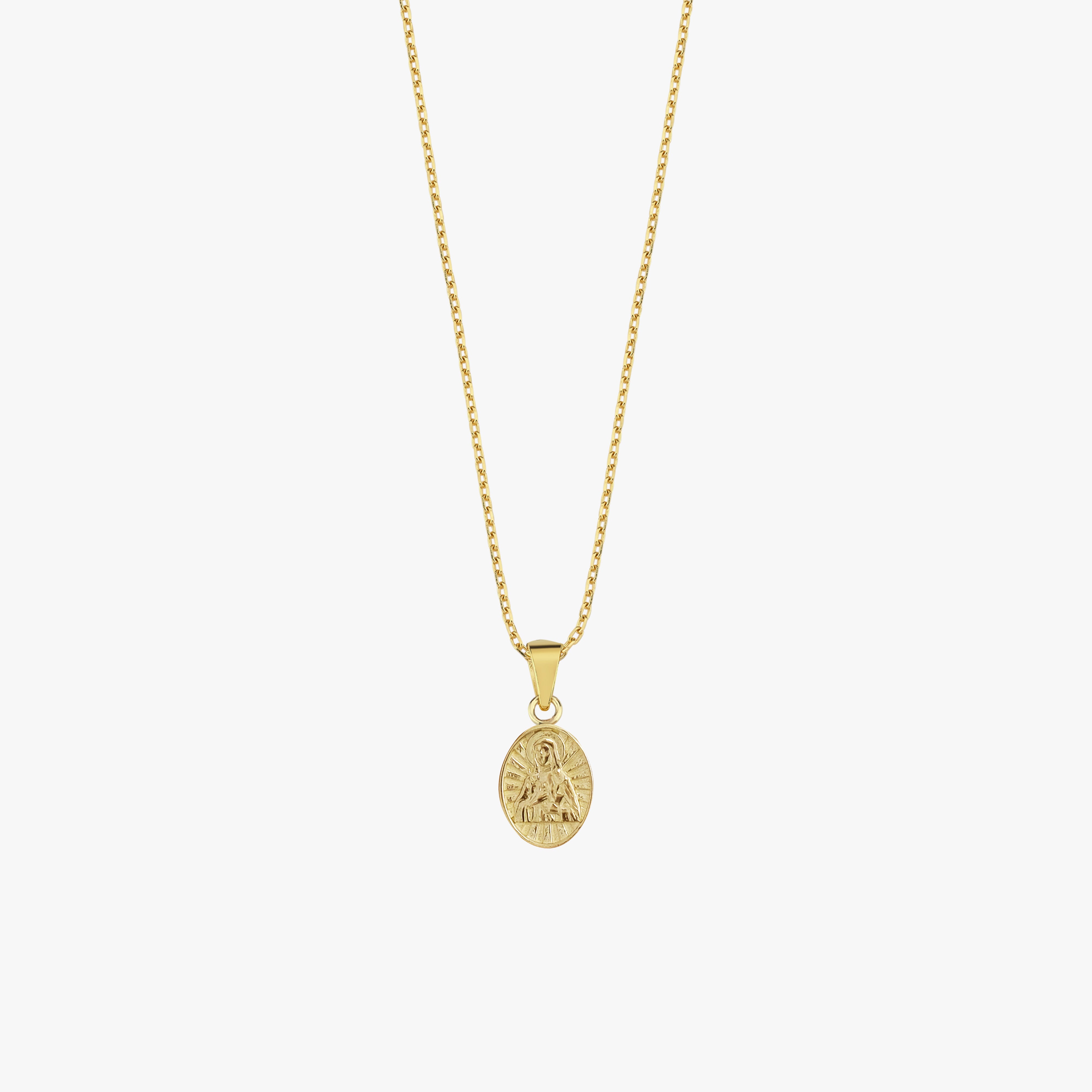 This 14K solid gold St. Bridget medal necklace honors the beloved saint known for wisdom, compassion, and spiritual strength. A graceful piece of Catholic jewelry, perfect as a gift or personal devotion.