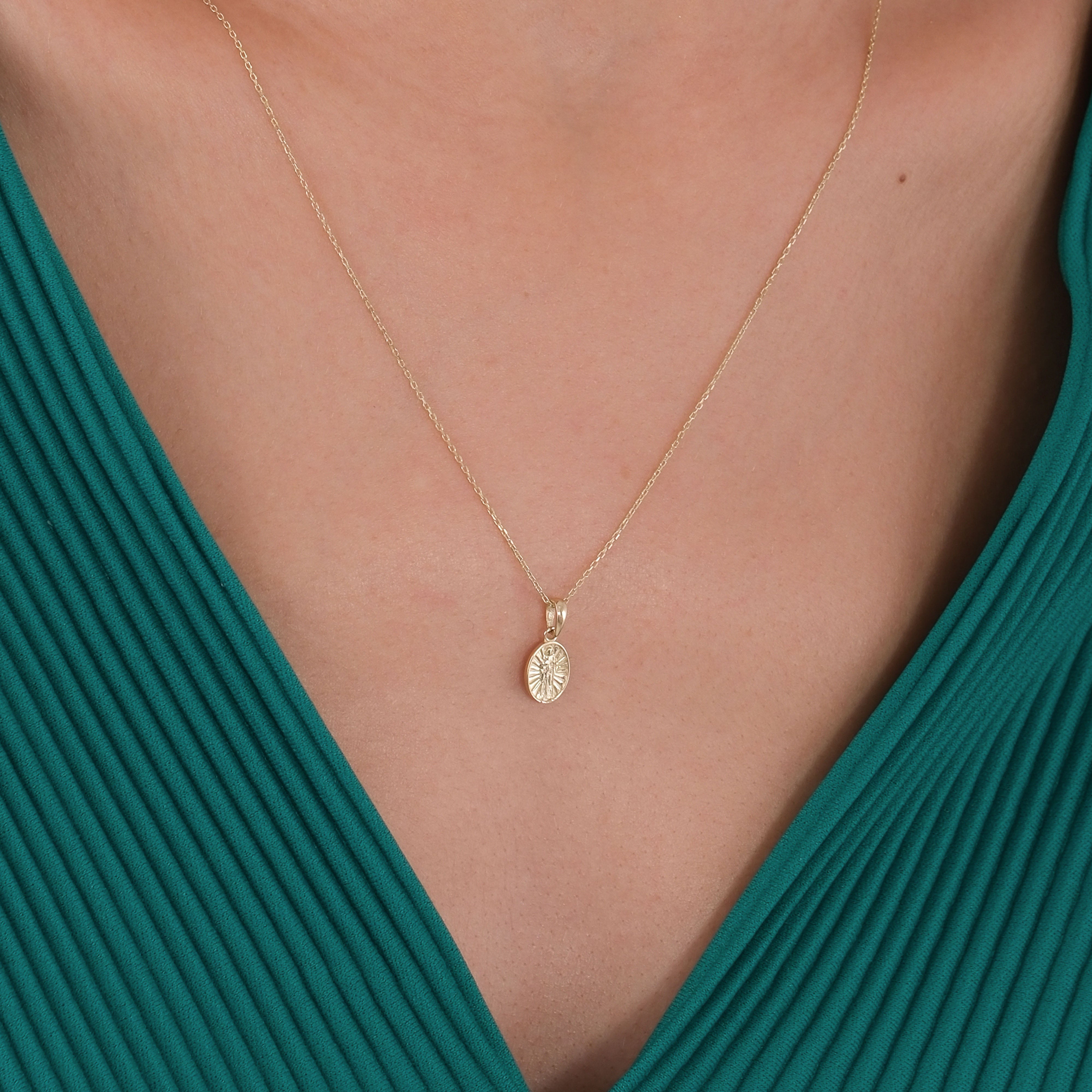 This elegant 14K solid gold necklace features the Sacred Heart of Jesus medal, symbolizing divine love and protection. A meaningful piece of Catholic jewelry, perfect for everyday wear or as a cherished gift of faith.