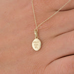 Crafted in 14K solid gold, this St. Hildegard medal necklace honors the visionary saint of music, healing, and wisdom. A powerful piece of Catholic jewelry for spiritual inspiration and meaningful gifting.