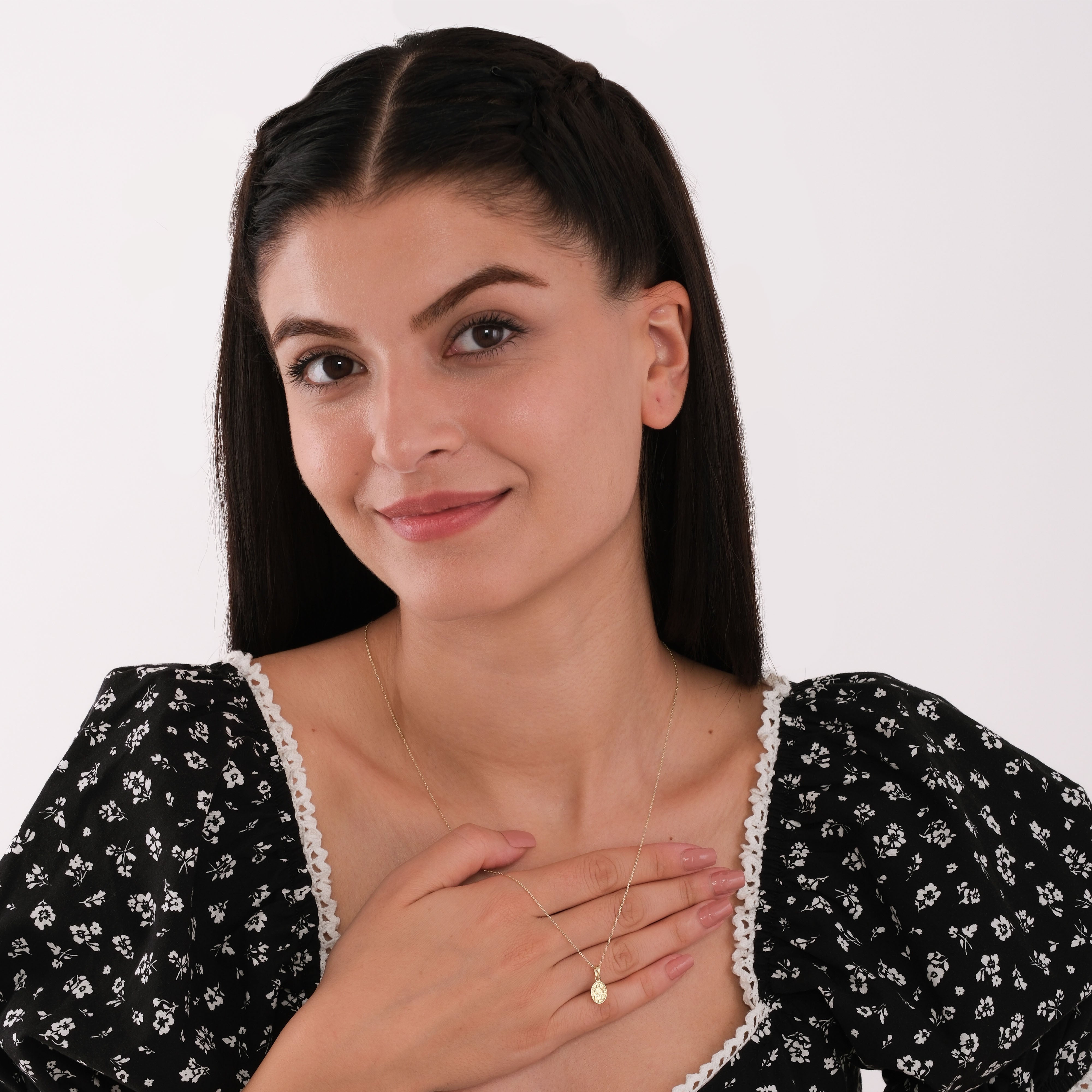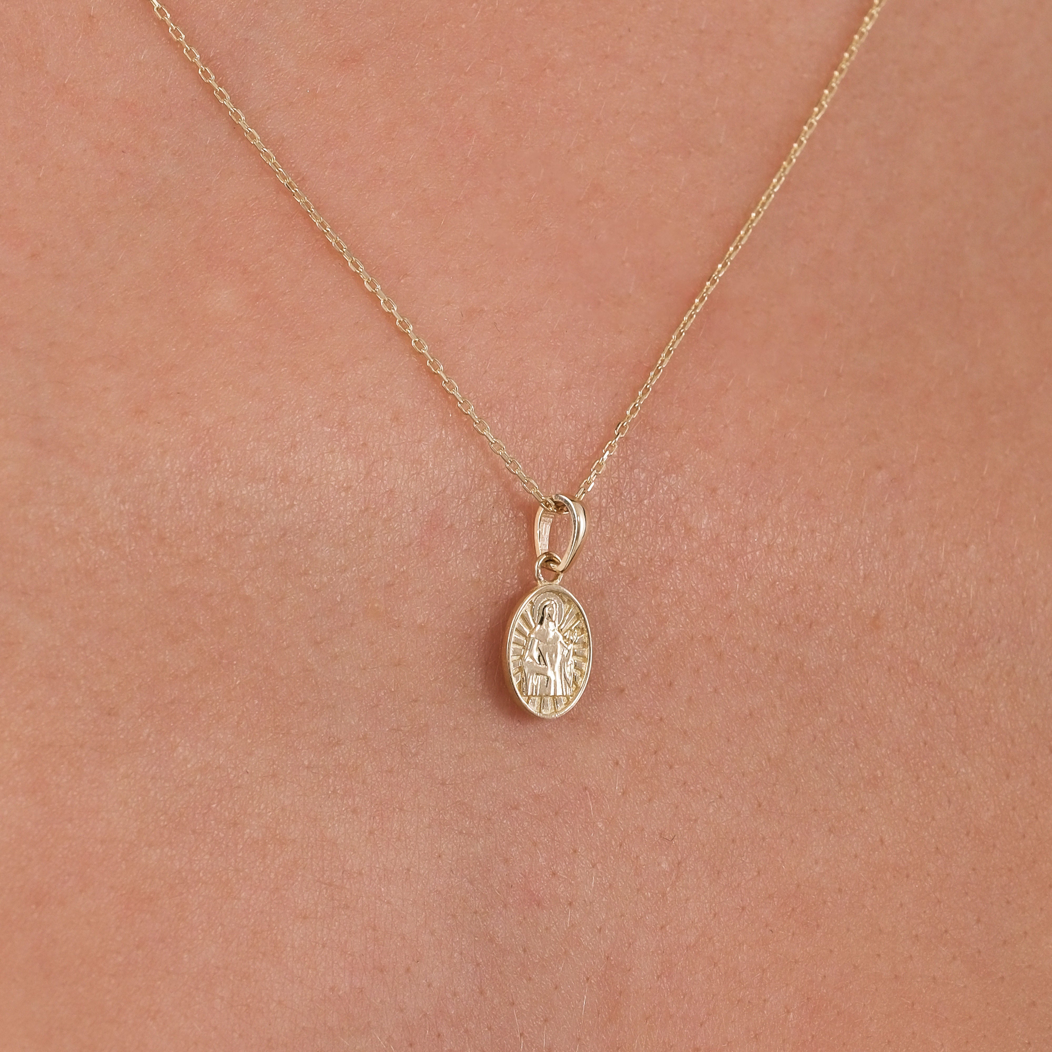 This 14K solid gold St. Joan of Arc medal necklace celebrates the fearless warrior saint and symbol of courage and divine purpose. A bold piece of Catholic jewelry for strength and inspiration.
