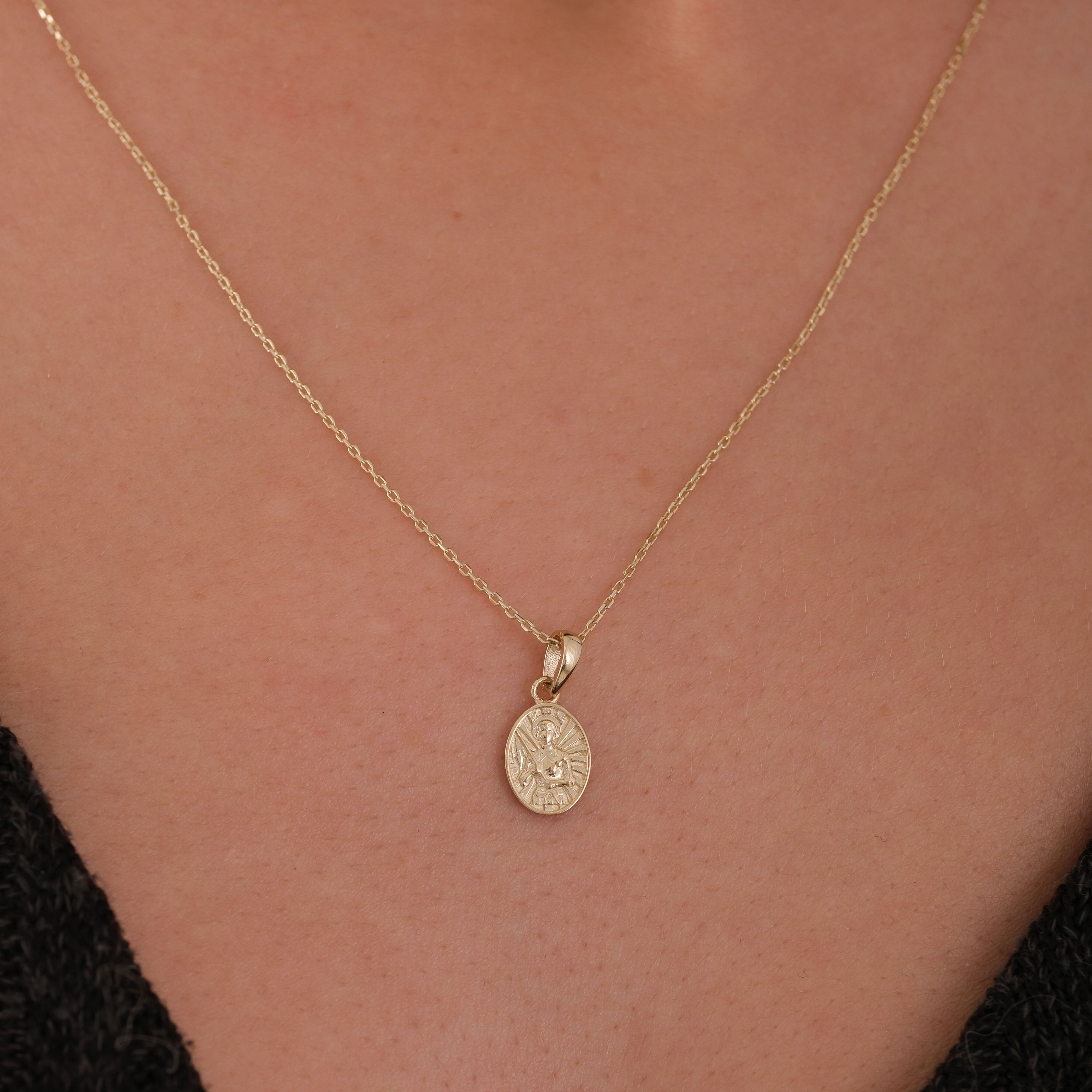 Celebrate the Little Flower of Jesus with this 14K solid gold St. Therese medal necklace. A delicate symbol of humility, love, and devotion—perfect for daily inspiration or a heartfelt Catholic gift.