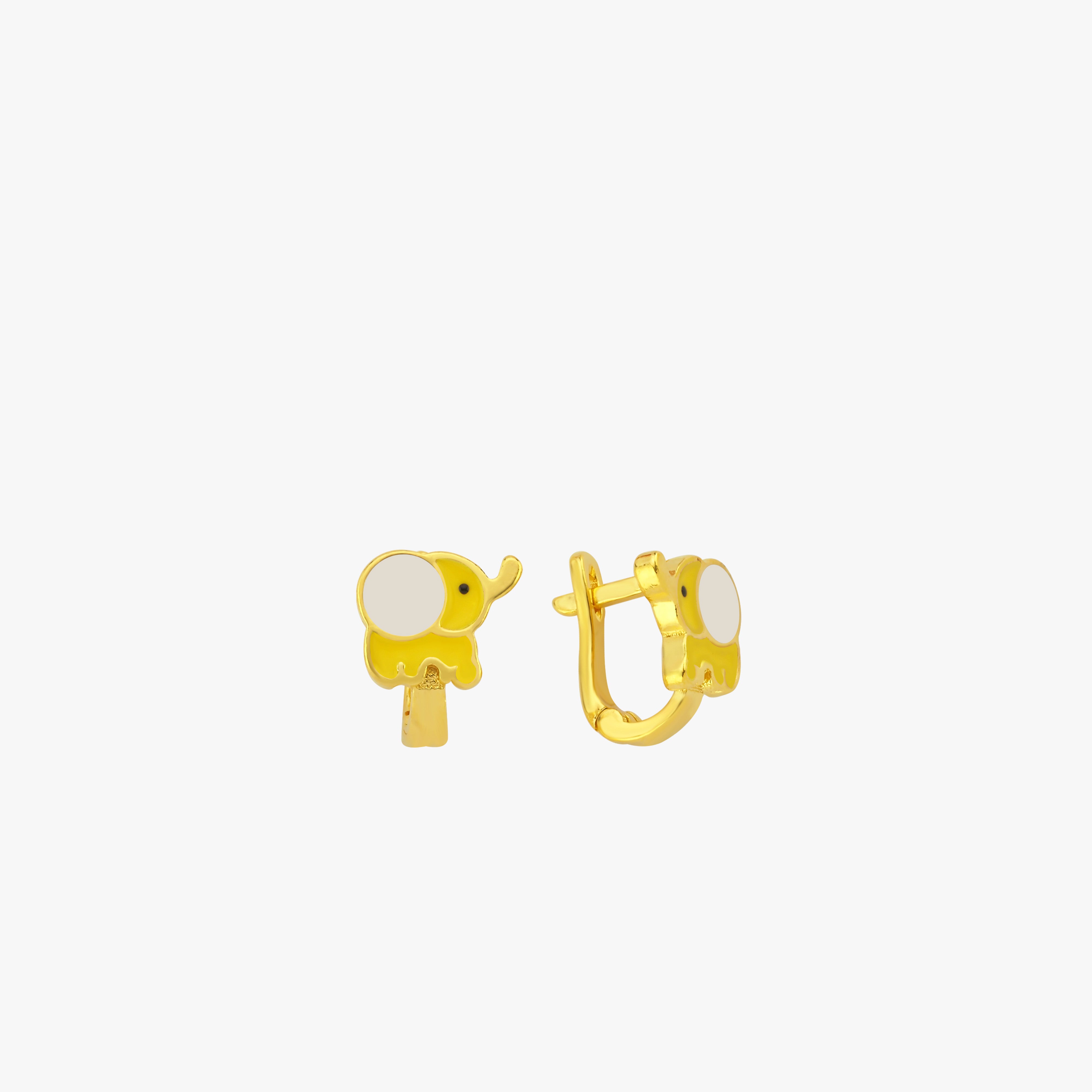 These earrings are made from 18K Gold Vermeil. Featuring a cheerful yellow enamel elephant design, they add playful charm and color to your little oneβs look. Secure and lightweight, these hoops are perfect for everyday wear and fun occasions.