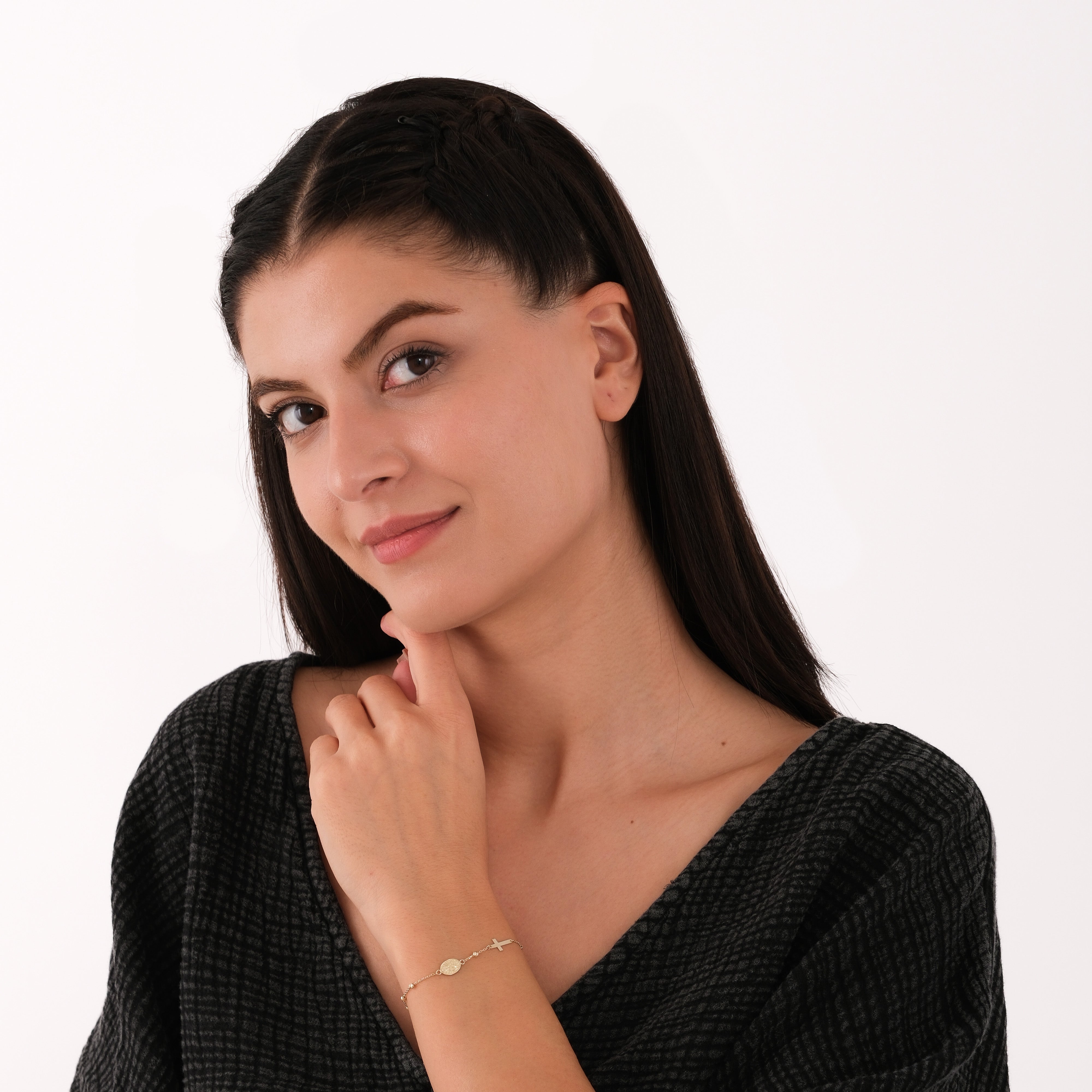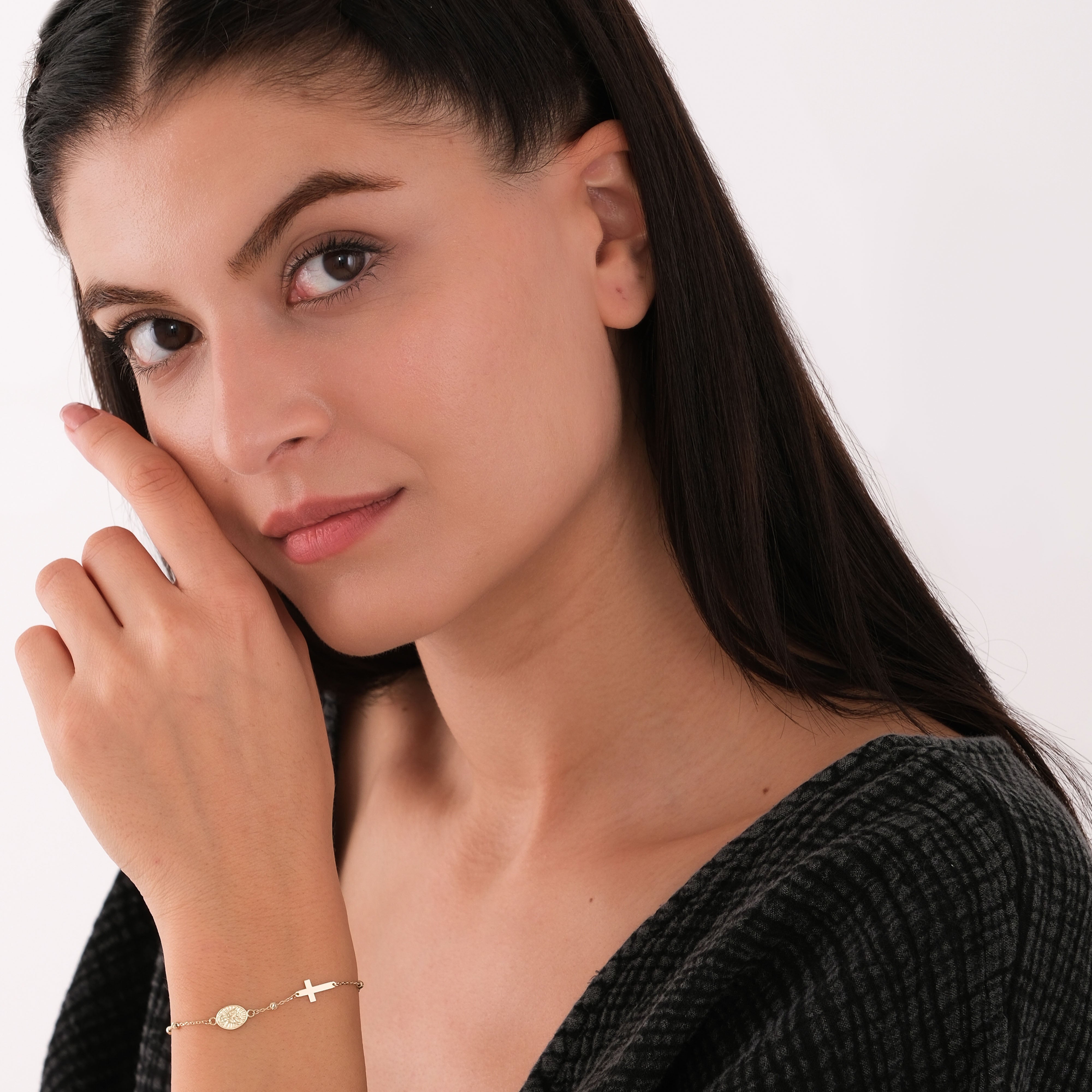This 14K solid gold St. Catherine Catholic bracelet features a finely engraved medal and a sleek cross, symbolizing wisdom, courage, and devotion. Designed for daily wear or as a meaningful gift, the bracelet includes an adjustable chain for a perfect fit. A timeless expression of faith inspired by one of the Churchβs most revered saints.