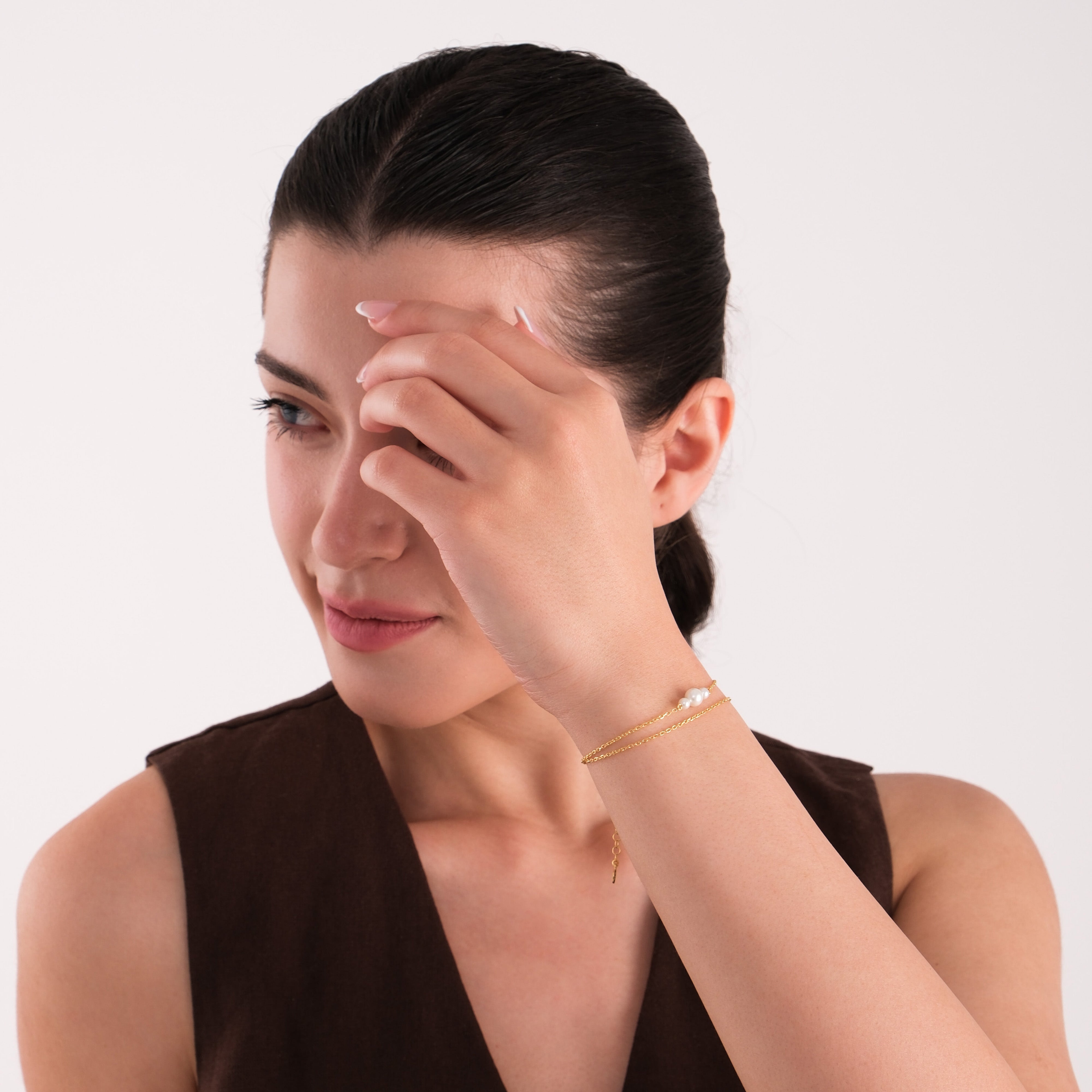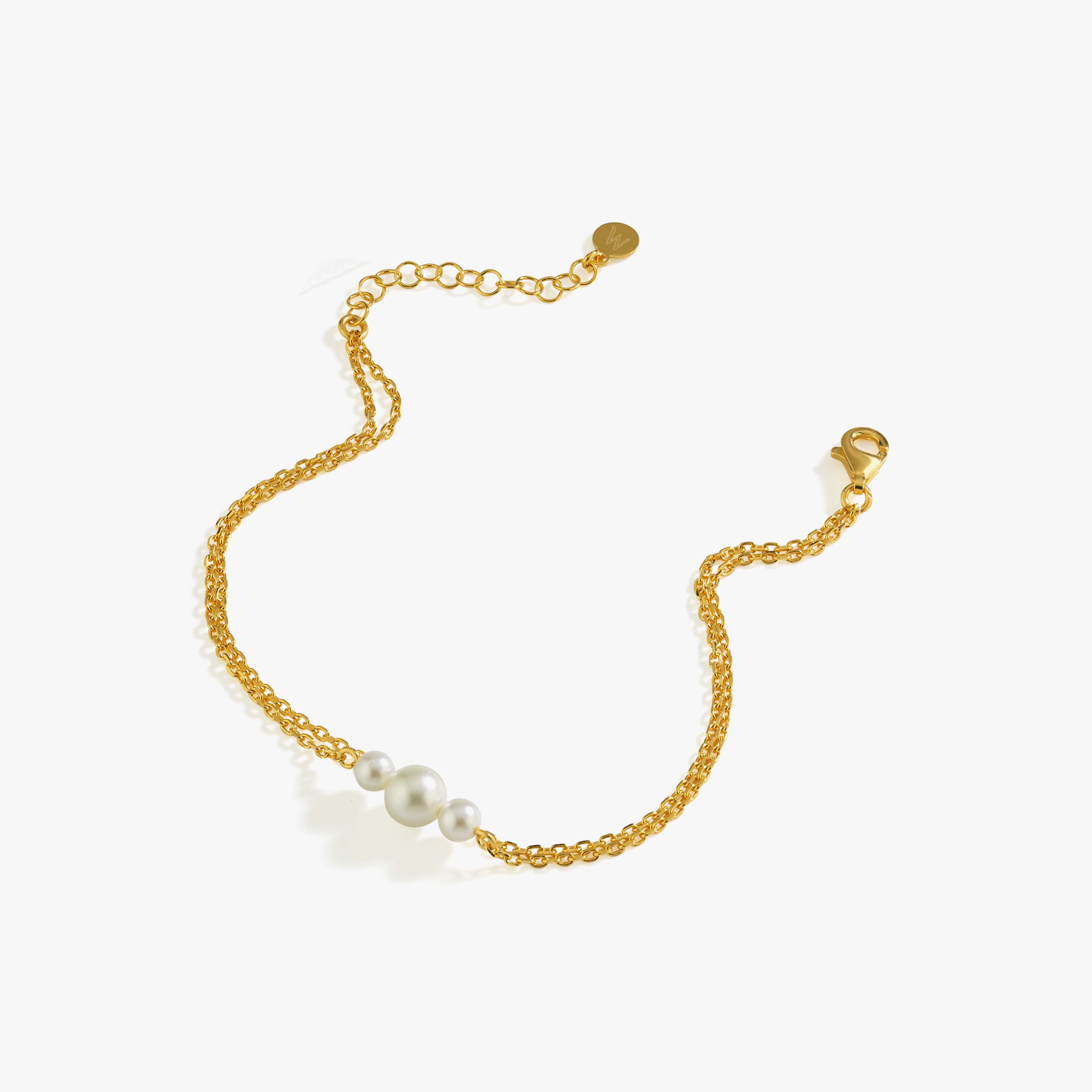Timeless and elegant, our Triple Pearl Bracelet is crafted in 18K gold vermeil on sterling silver. Featuring three delicate pearls centered in a 0.5-inch arrangement on a sleek gold chain, this graceful piece is perfect for everyday wear, weddings, or meaningful milestones. An ideal gift for bridesmaids, a 30th birthday, or lovers of classic beauty.