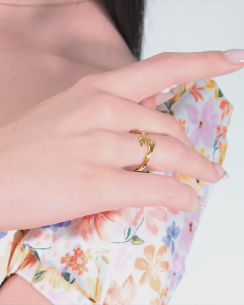 Embrace warmth and affection with our 14K Gold Vermeil Hug Ring, crafted over sterling silver for lasting beauty and comfort. Featuring a unique hugging hands design with a 10mm hug detail, this adjustable ring symbolizes love, connection, and friendship. A perfect gift for the special women in your life, its versatile fit ensures everyday wear with heartfelt meaning.