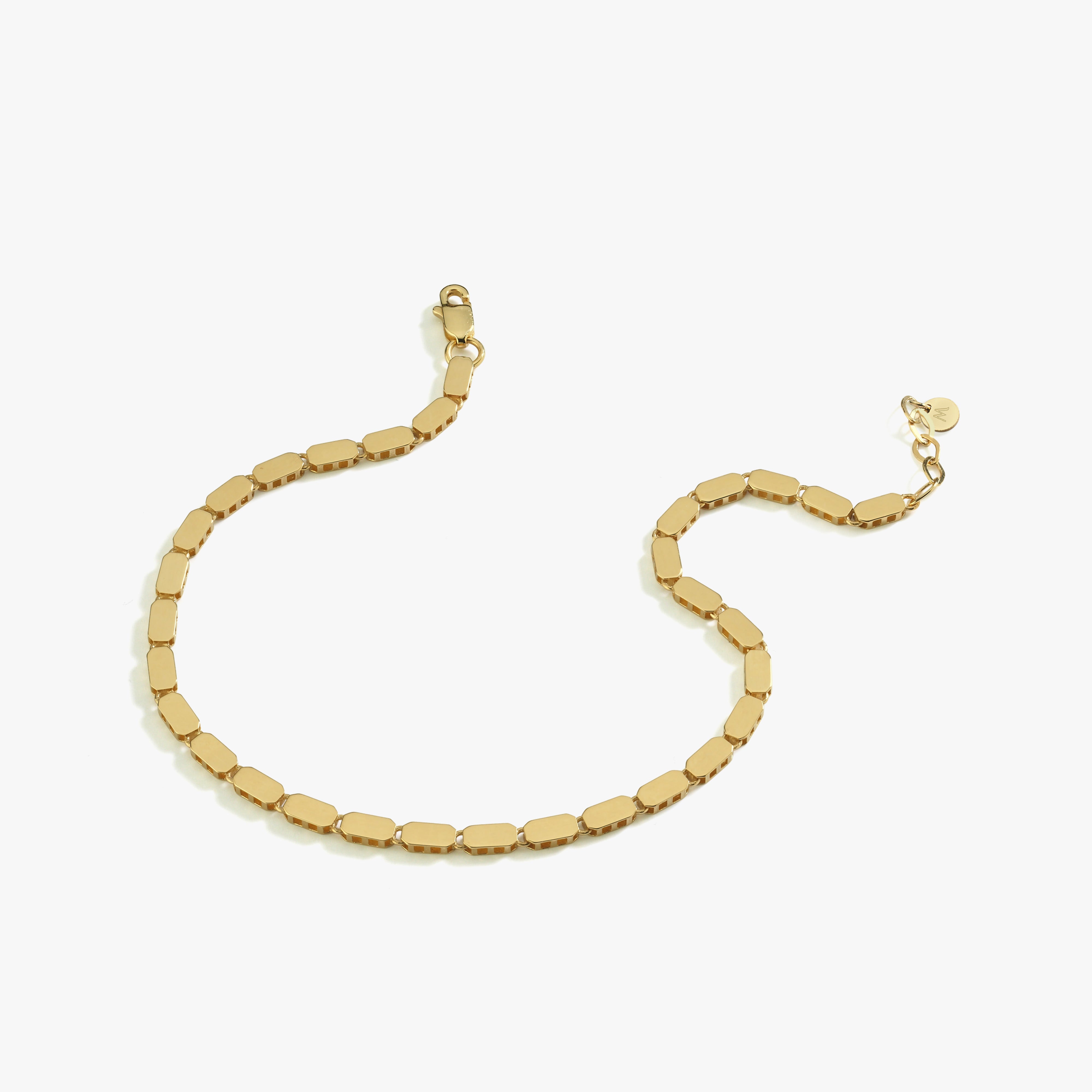 The mirror chain bracelet is made of 14K solid gold, featuring sleek rectangle links for a modern look.