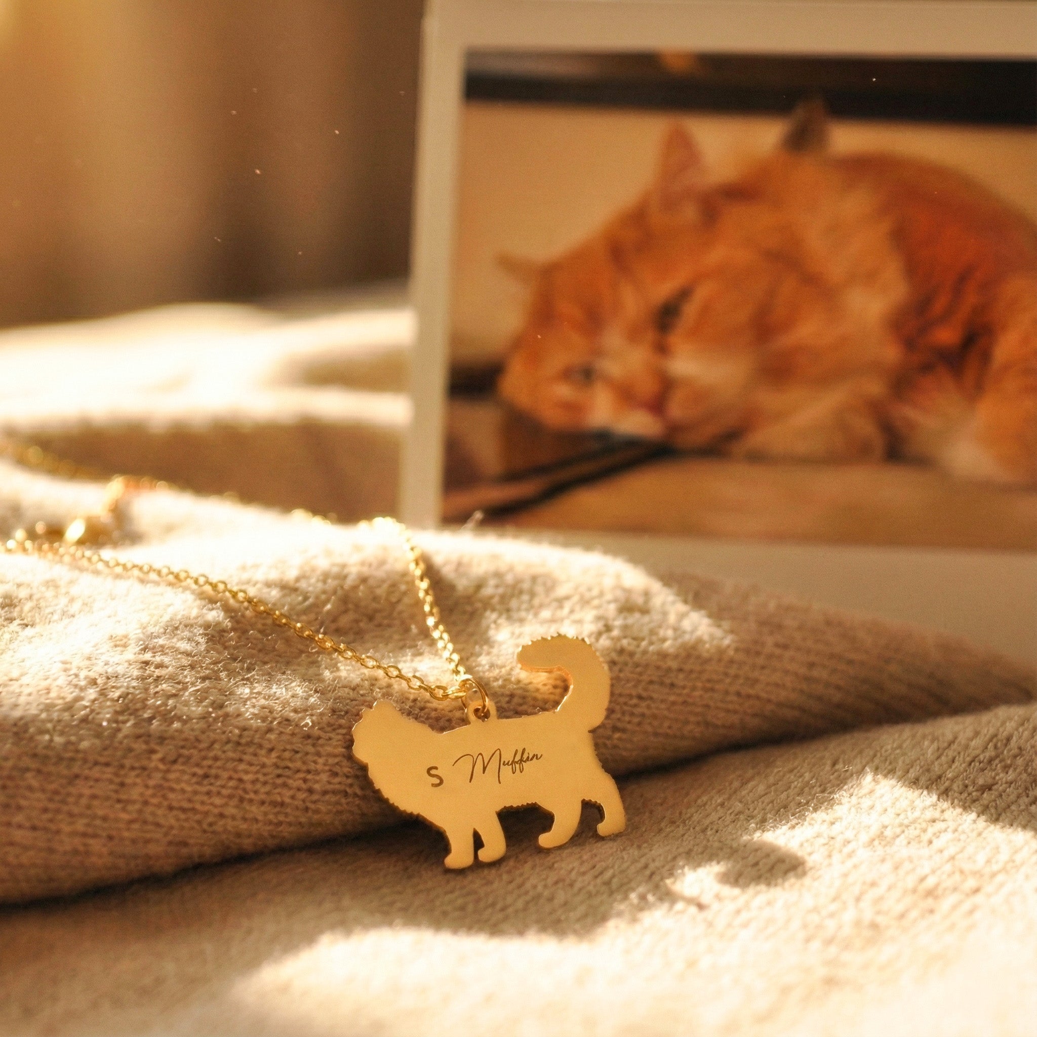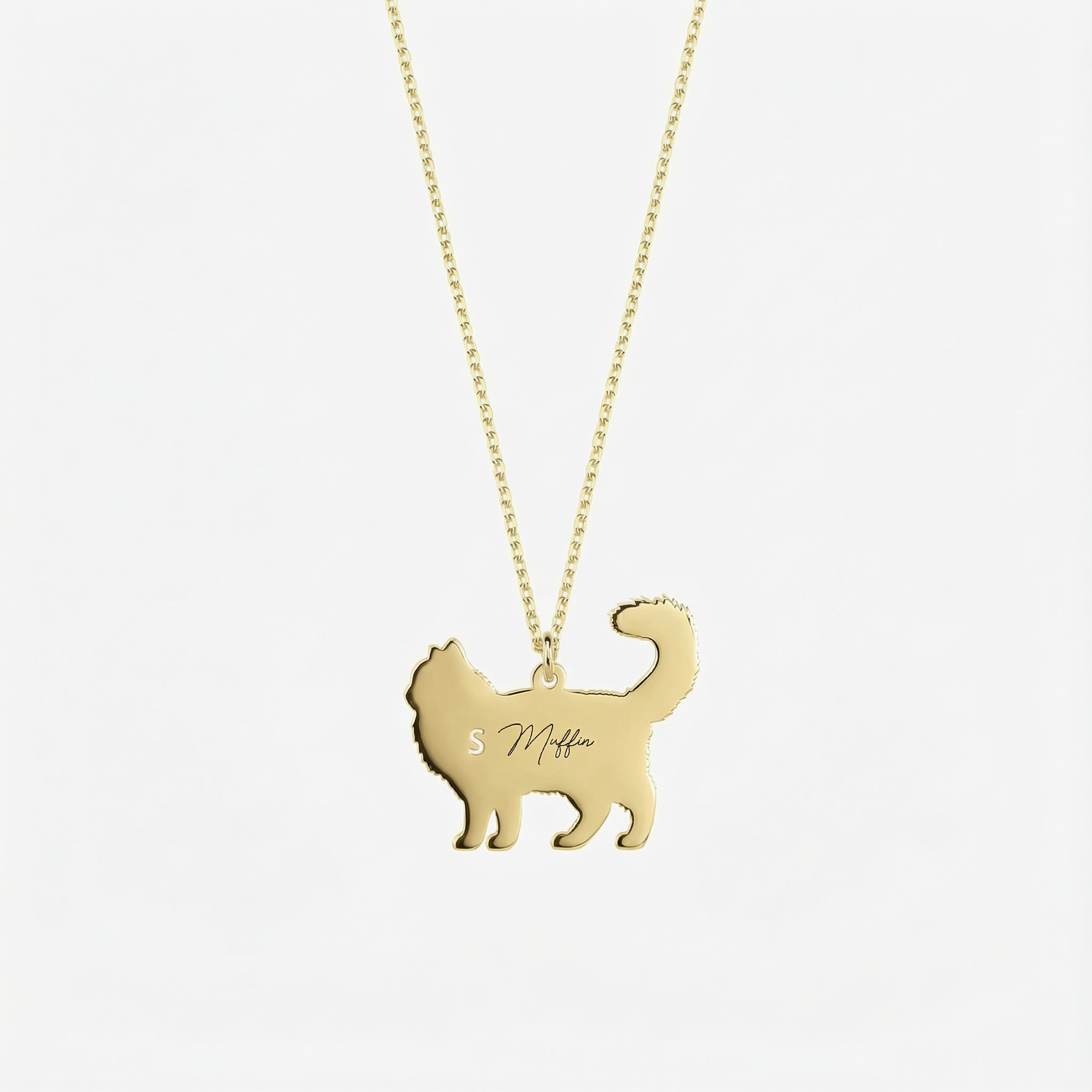 Honor the memory of your cherished cat with our Cat Memorial Necklace, a timeless keepsake designed to celebrate the love and companionship of your furry friend. Featuring a fluffy cat silhouette, this pendant is crafted in either 14K Solid Gold or 14K Gold Plated, and personalized with your cat’s name or initials.