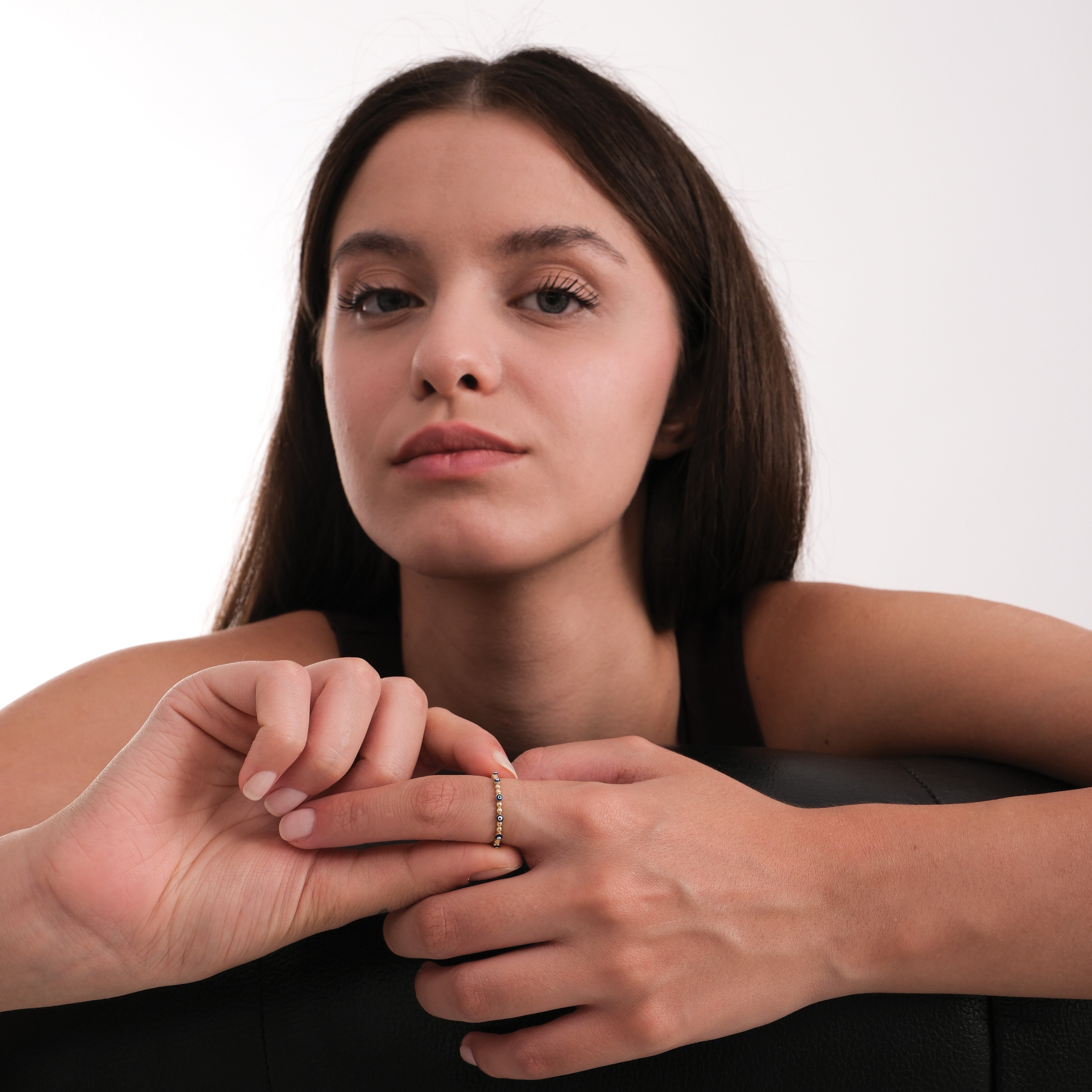 This 14K Solid Gold Beaded Evil Eye Ring blends timeless craftsmanship with symbolic protection. Featuring miniature blue enamel evil eye beads set between polished gold details, it offers a modern twist on the traditional motif. Perfect for stacking or wearing solo, this ring radiates both charm and meaning — a subtle yet powerful piece for everyday elegance.