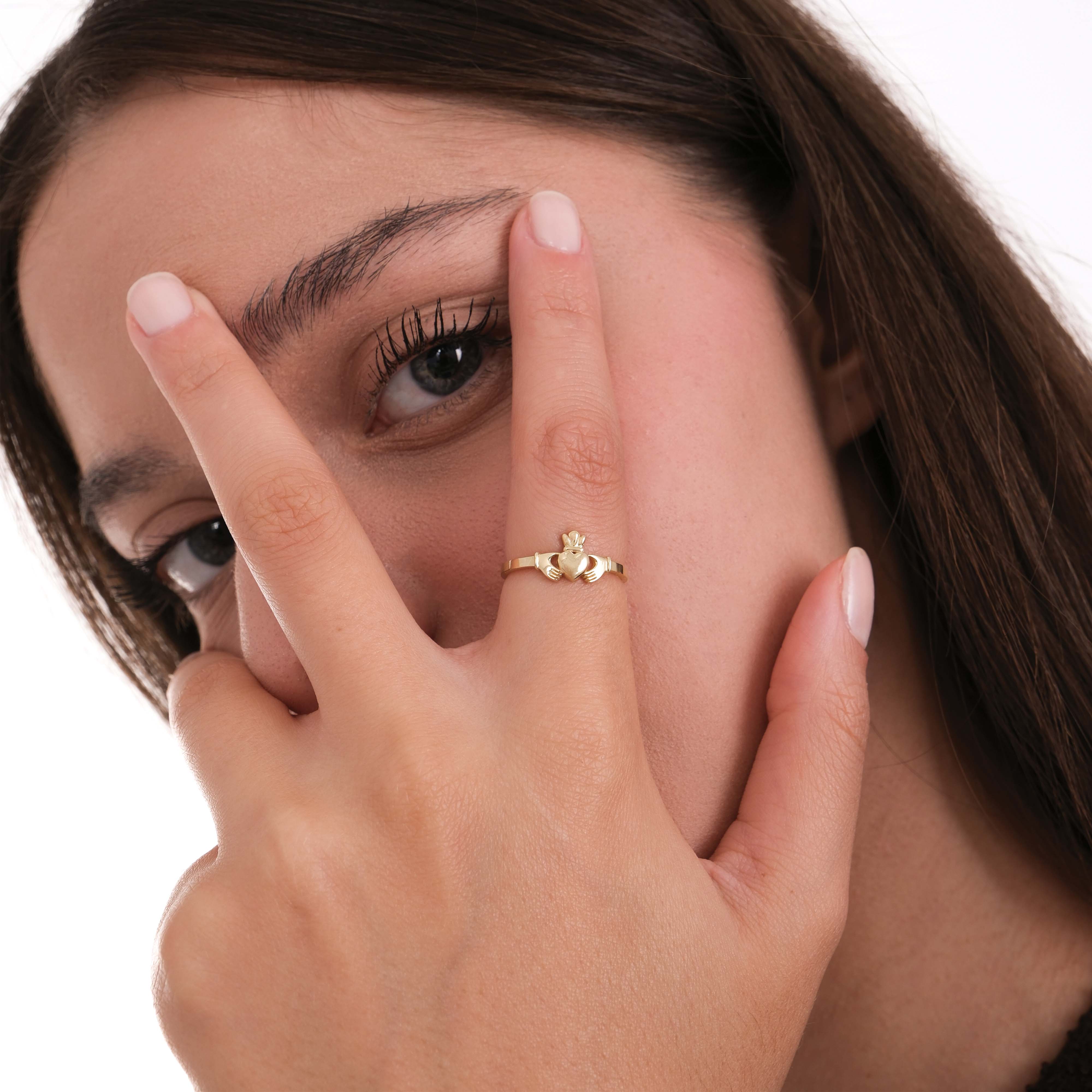 The Claddagh Ring in 14K Solid Gold carries centuries of Irish tradition and symbolism. Representing love (the heart), friendship (the hands), and loyalty (the crown), this timeless design makes a meaningful gift for someone special or a symbolic keepsake for yourself. A piece that tells a story of devotion and connection.