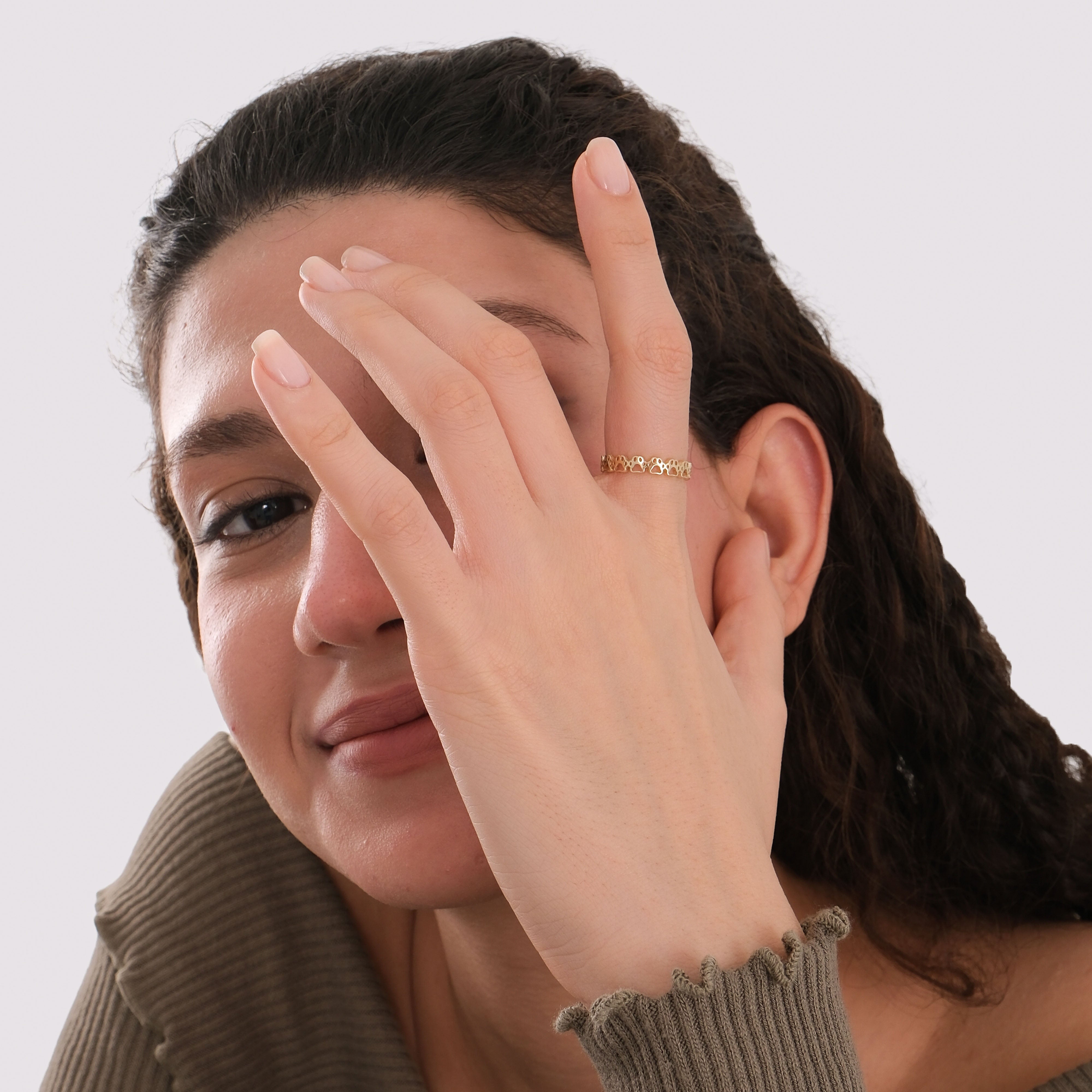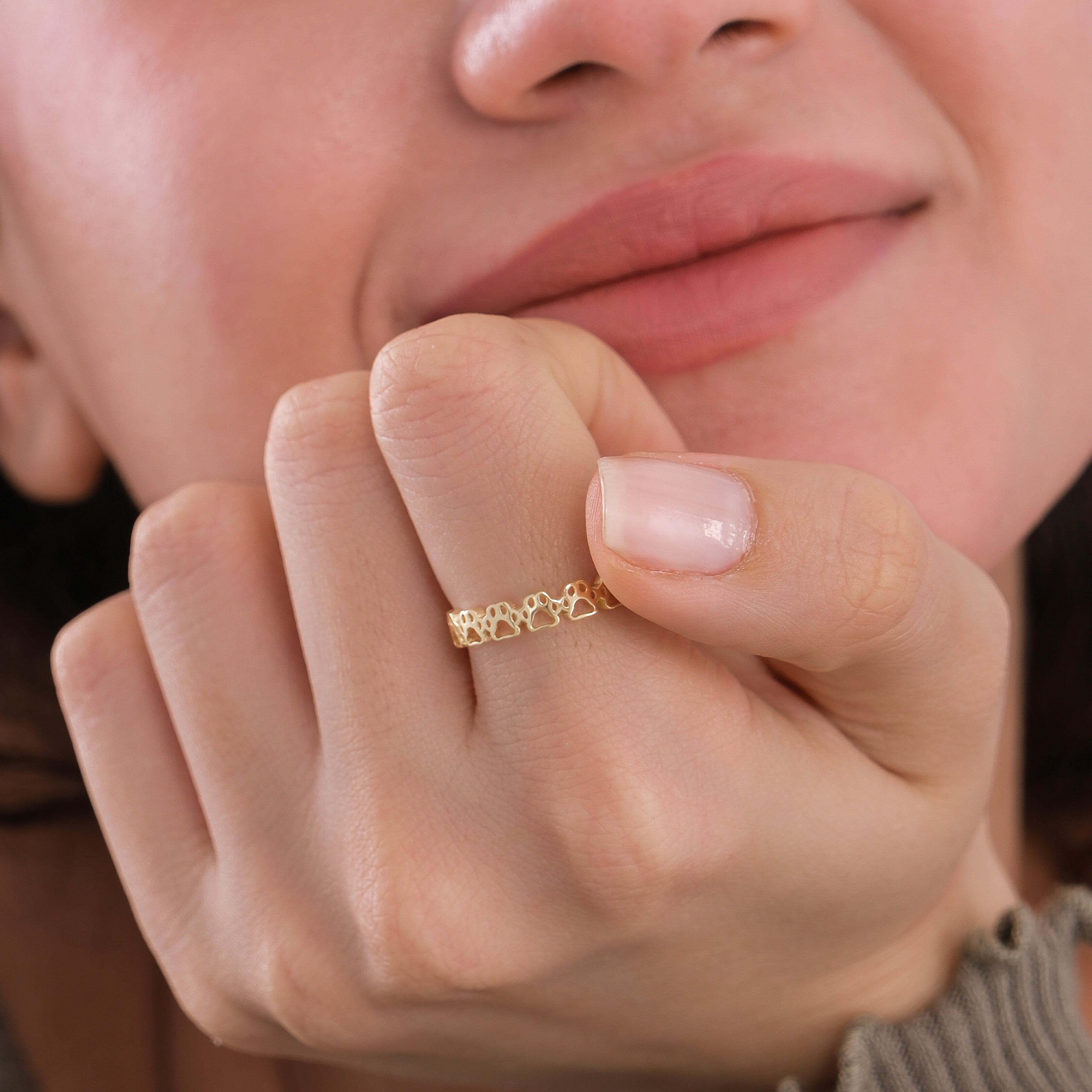 The Paw Print Eternity Ring in 14K Solid Gold is a heartfelt tribute to the love we share with our furry companions. Designed with a continuous circle of delicate paw prints, it symbolizes loyalty, friendship, and eternal connection. A perfect keepsake for pet lovers, this ring adds a meaningful touch to your everyday jewelry collection.