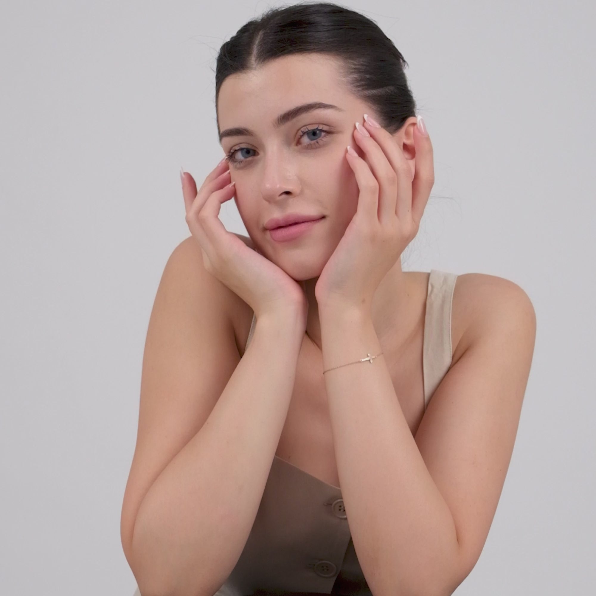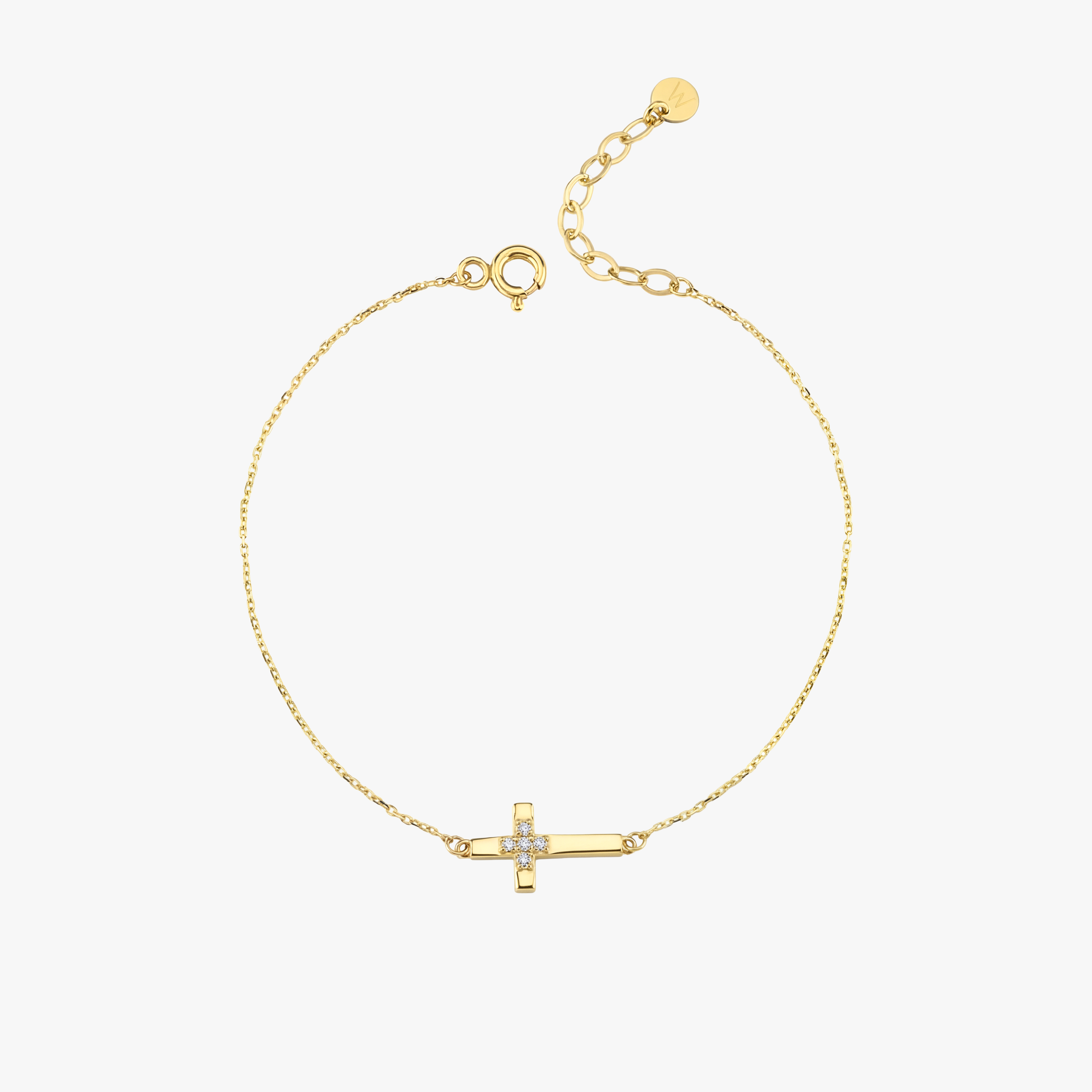 This tiny cross bracelet is available in 14K solid gold or 14K gold plated options. A thoughtful gift for women and perfect for everyday wear.