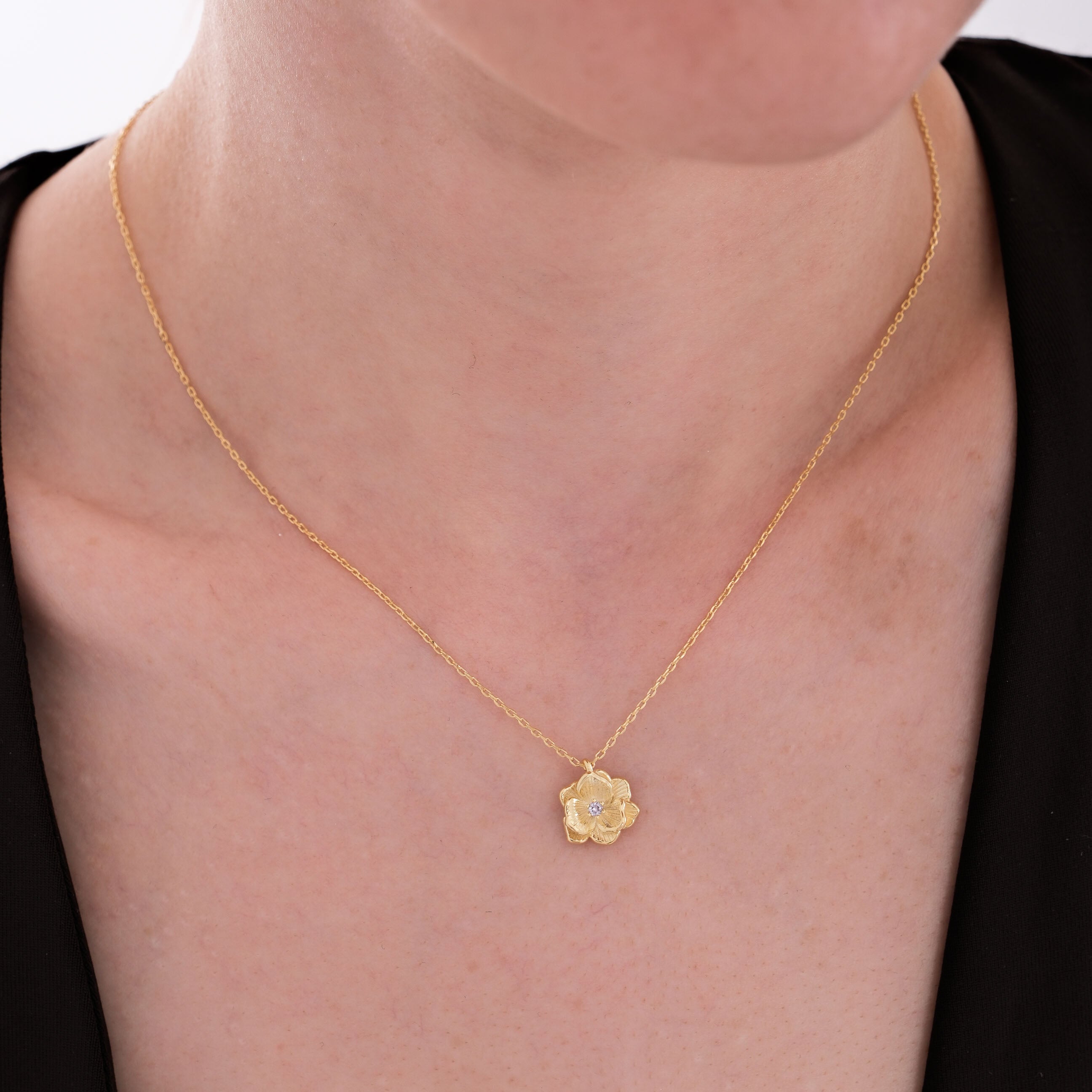 Celebrate September birthdays with our Birth Flower Necklace, crafted in 18K gold vermeil on sterling silver. Featuring a 0.5-inch floral pendant accented with a sparkling clear stone, this meaningful piece symbolizes purity, wisdom, and strength. A timeless accessory for everyday wear or a thoughtful birthday gift.