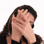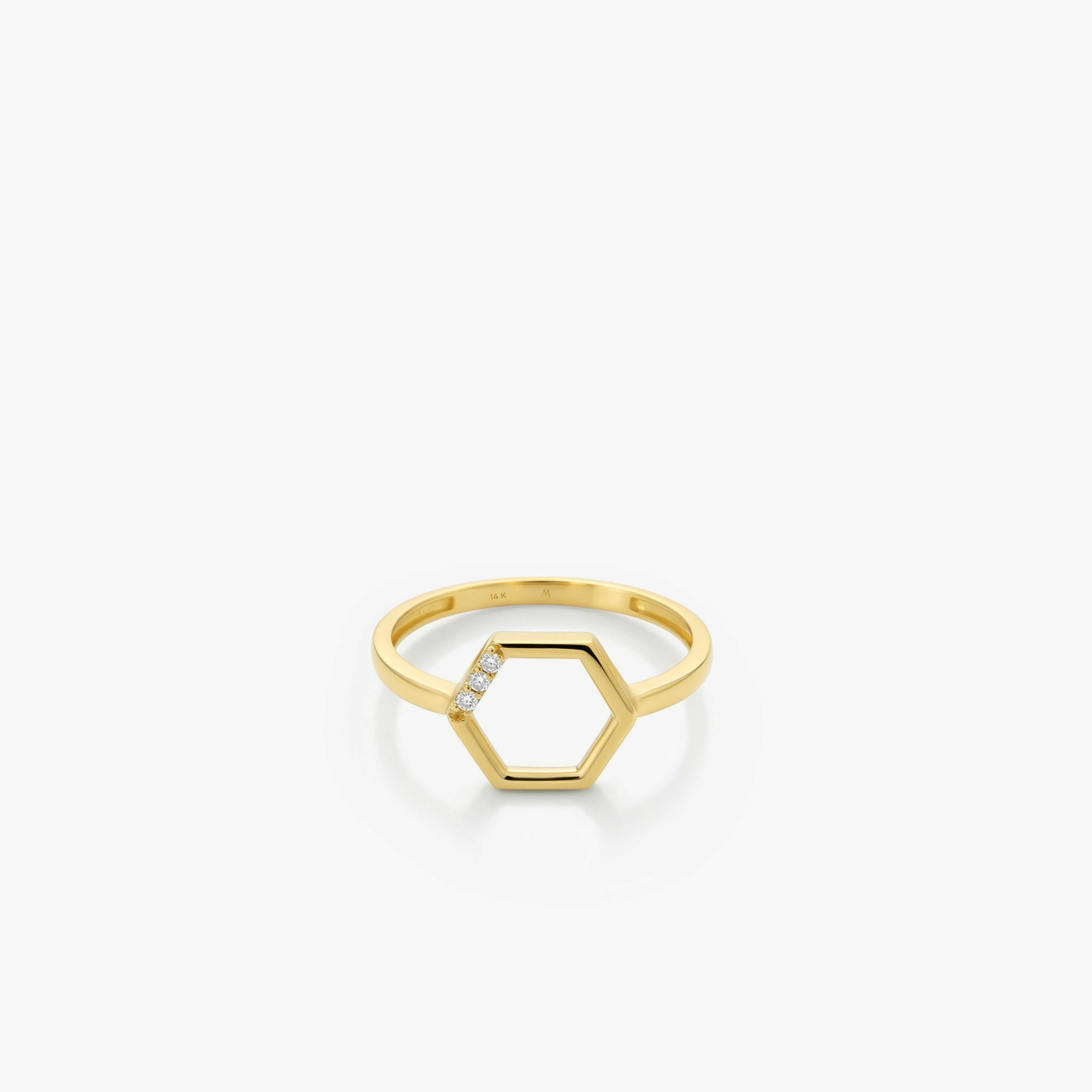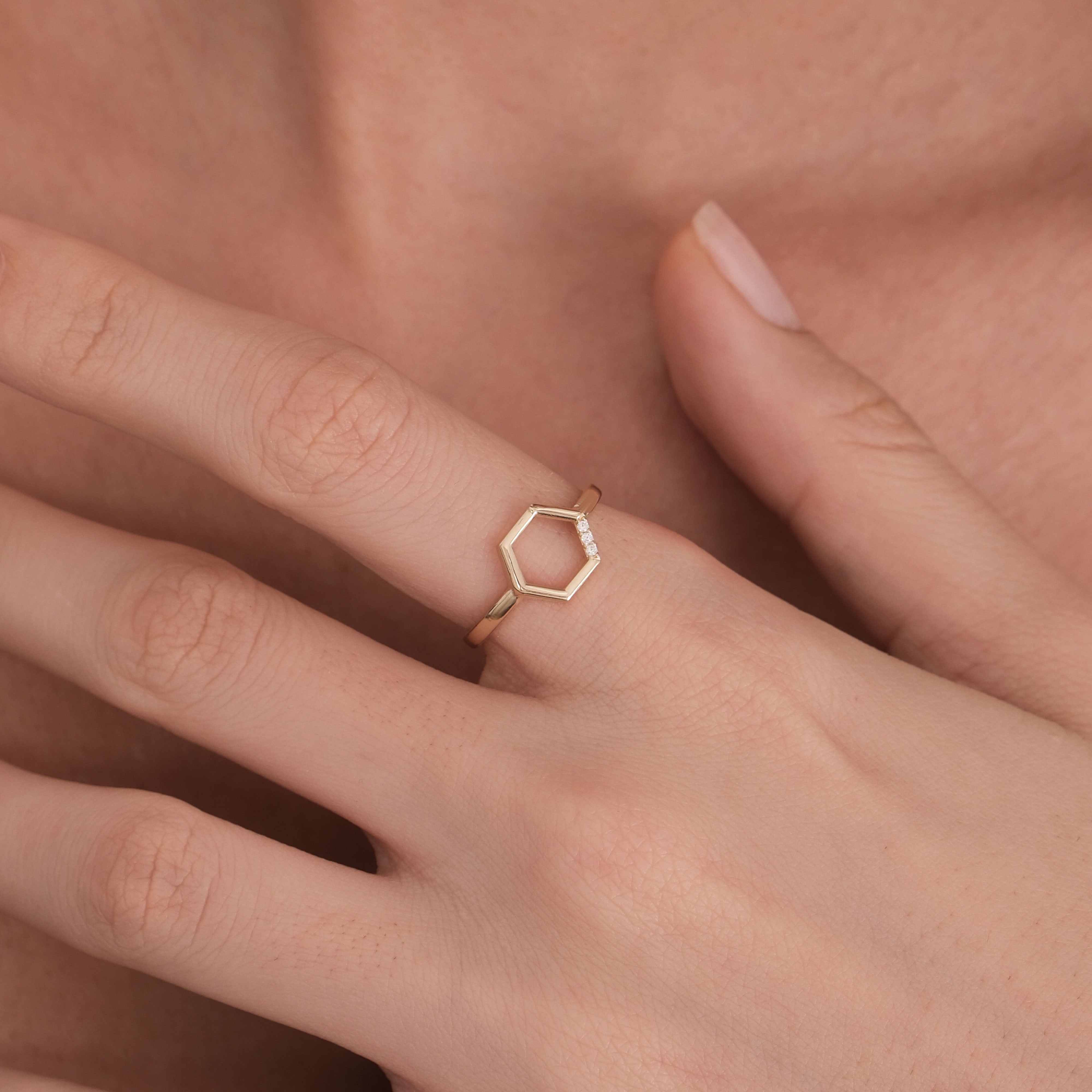 This hexagon ring is crafted from 14K solid gold and features a geometric open hexagon design adorned with three sparkling cubic zirconia stones. A modern and minimalist piece that adds a touch of sophistication to any look — a perfect Christmas gift.