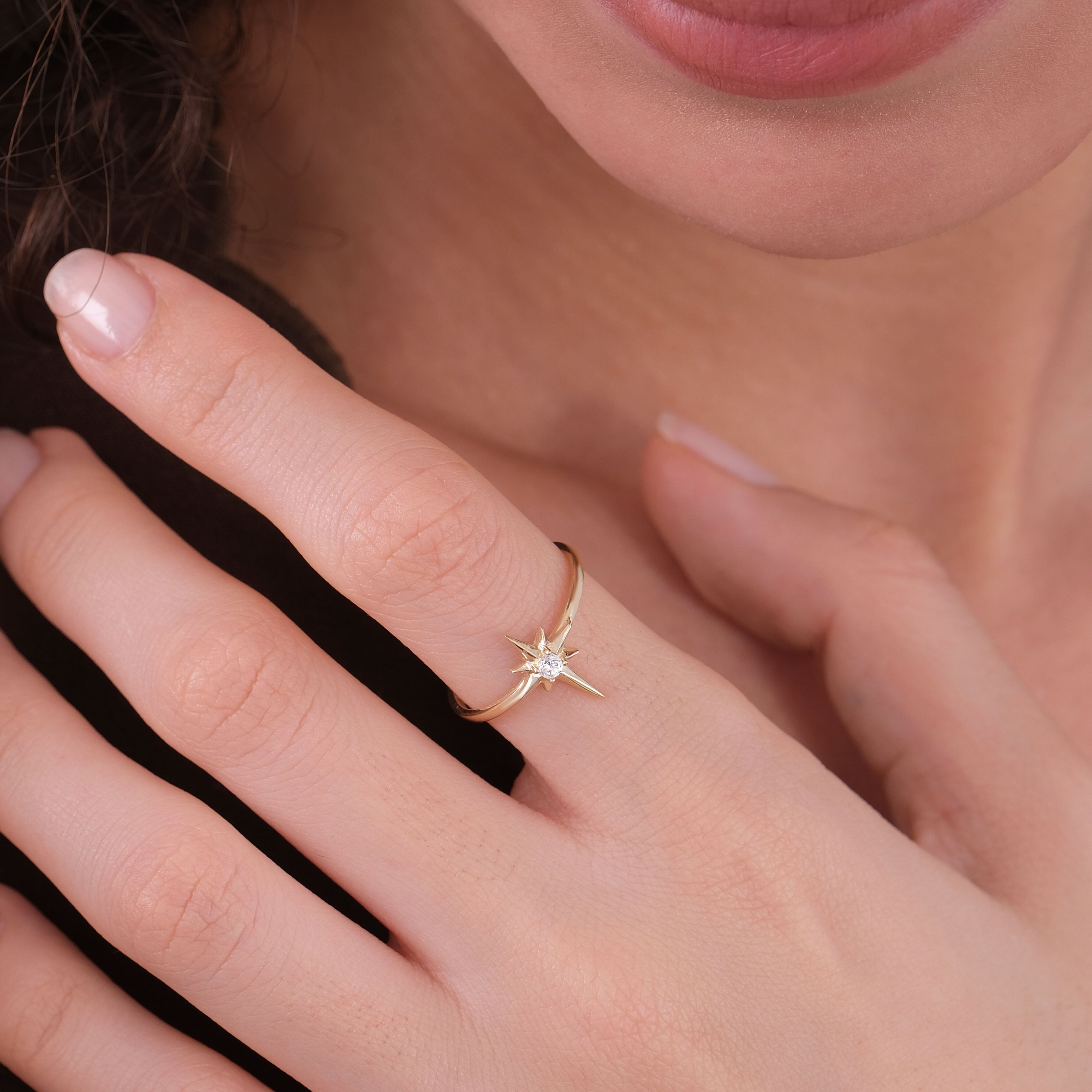 Shine bright with the North Star Ring, crafted in 14K solid gold and featuring a dazzling cubic zirconia at its center. Its minimalist star design makes it a timeless piece for everyday elegance or special occasions.