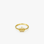 The Rope Band Queen Ring in 14K Solid Gold is designed for those who embrace elegance with confidence. Featuring a delicately twisted rope band and a polished crown adorned with cubic zirconia accents, this piece symbolizes power, beauty, and grace. Ideal as a stacking ring or a standalone statement of royalty.