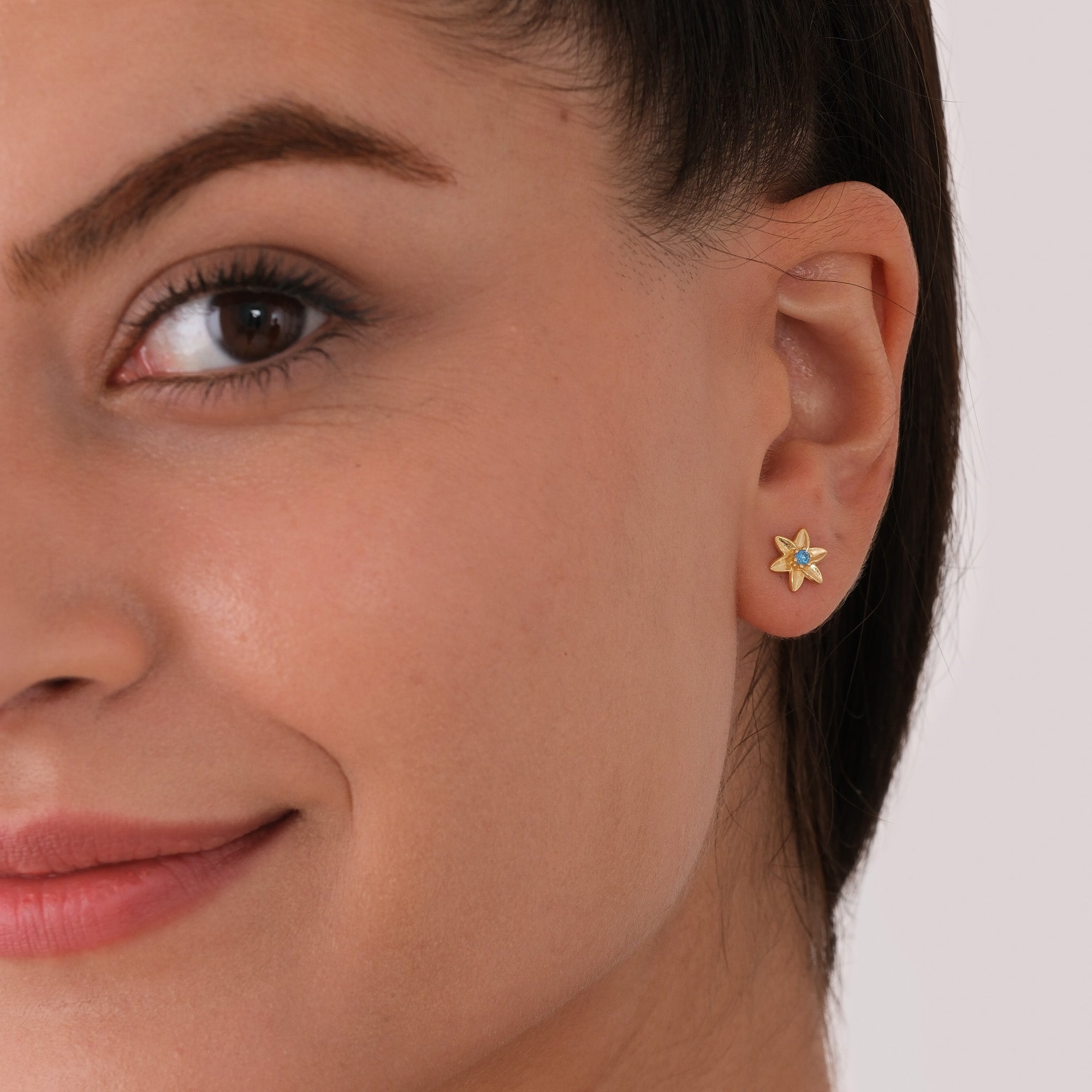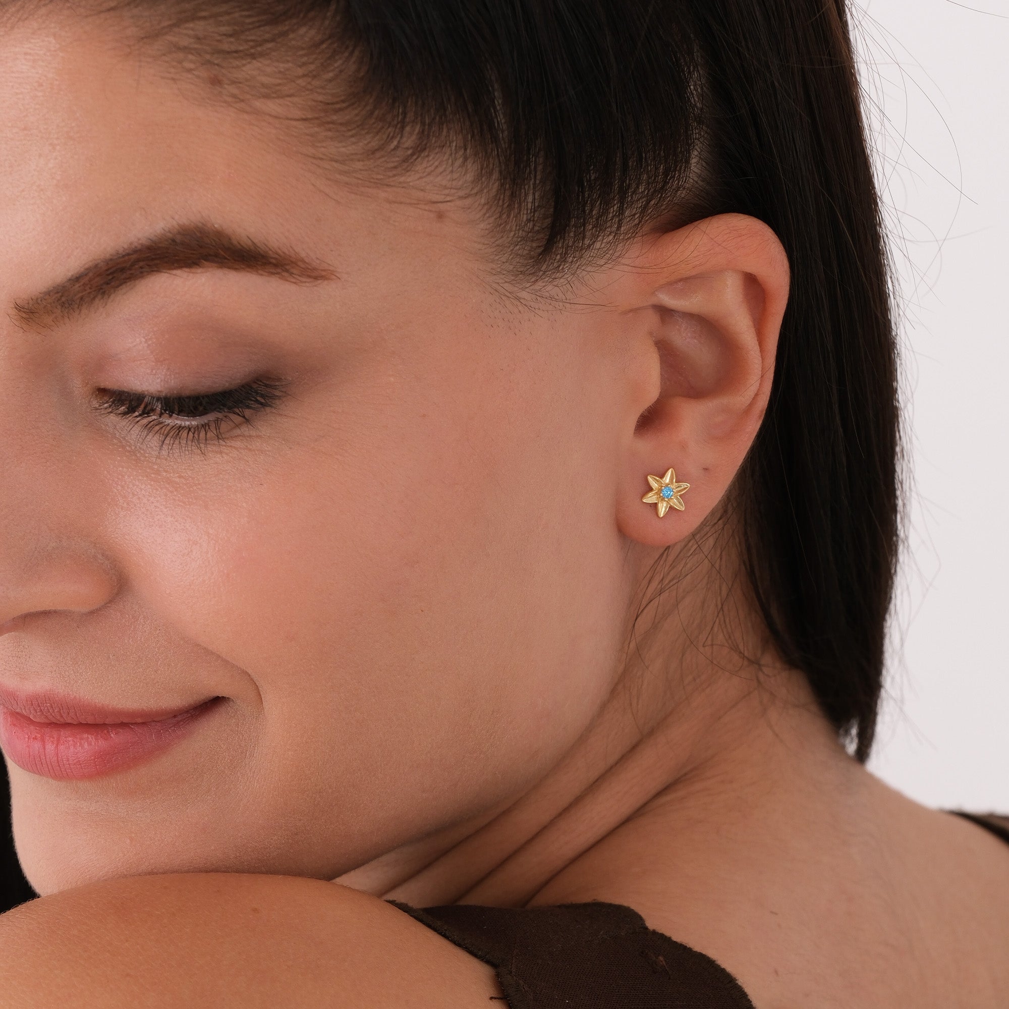 Celebrate December birthdays with our Birth Flower Earrings, crafted in 18K gold vermeil on sterling silver. These 0.25-inch studs feature a finely detailed floral design accented with a sparkling blue stone, symbolizing peace, strength, and serenity. A timeless and meaningful gift or everyday piece full of personal significance.