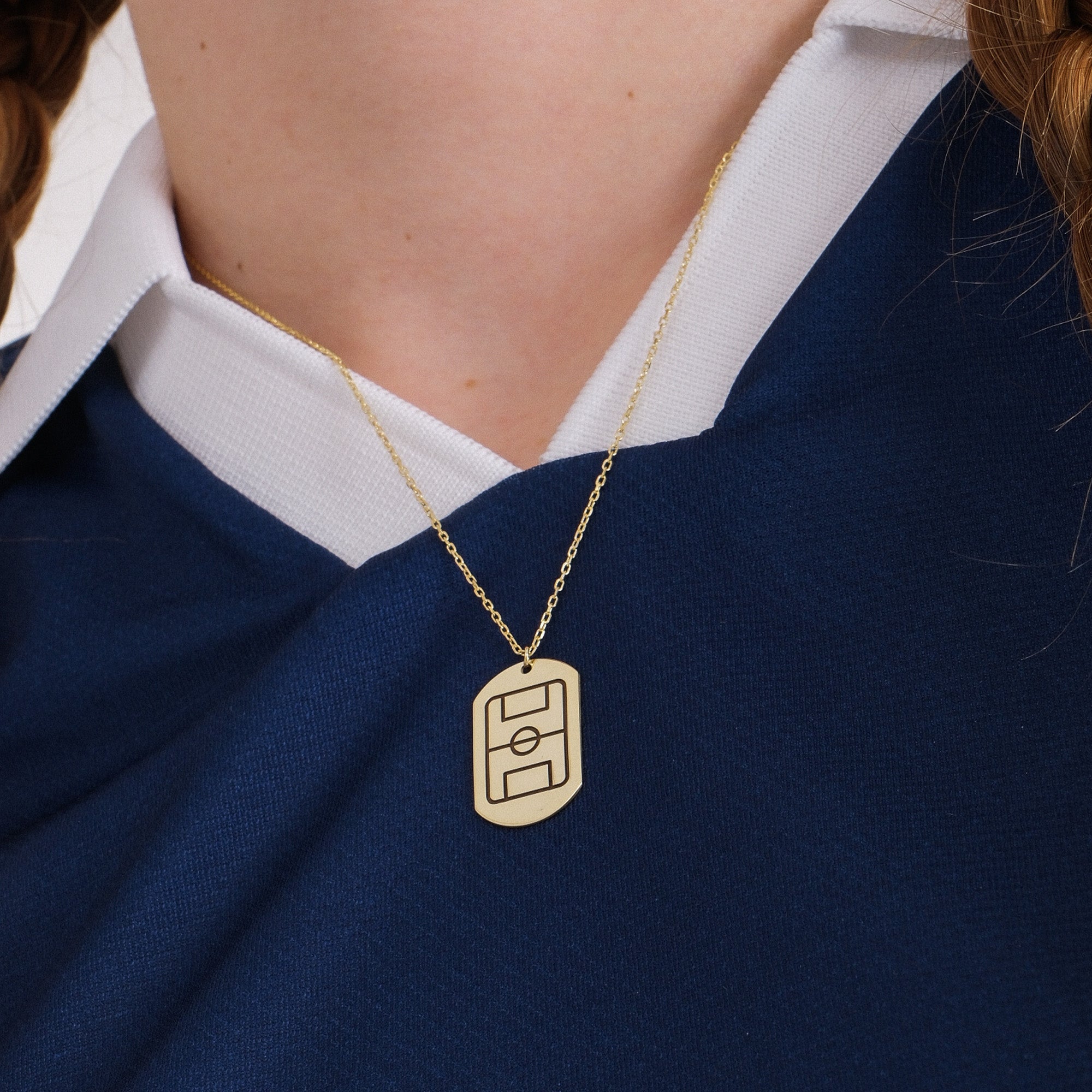 This 14K solid gold or gold plated over sterling silver necklace features a refined football field pendant, designed for sports lovers and 2026 World Cup enthusiasts. Handcrafted by experienced artisans, it's made to order with enduring quality and attention to detail. A wearable piece for everyday wear or a meaningful memorial gift. A subtle way to carry your passion.