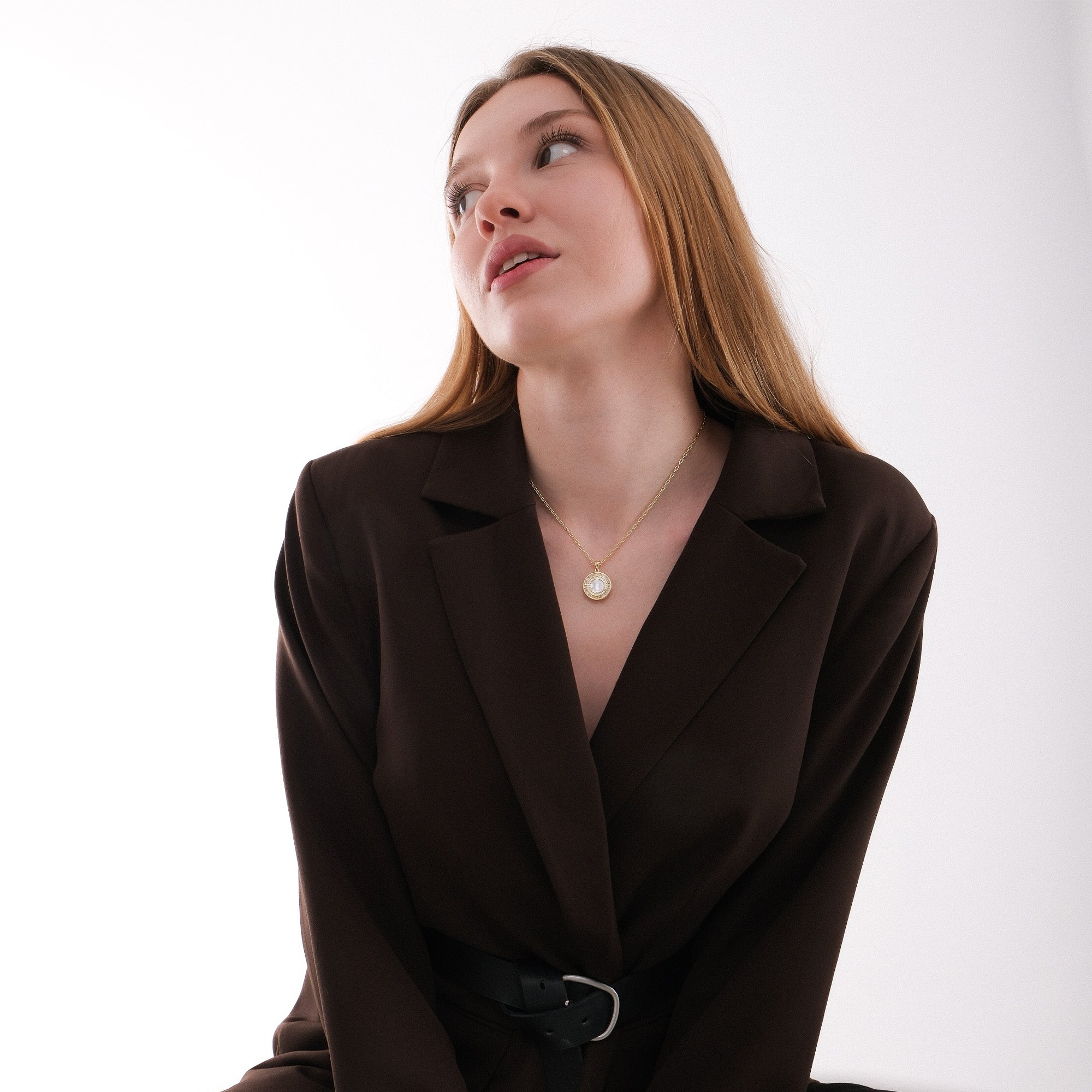 A luminous 18K gold vermeil over sterling silver necklace featuring a graceful Virgin Mary oval pendant. Handcrafted by experienced artisans, this piece blends devotion with everyday elegance. Wear it solo for quiet reverence or layer it for a personal look. A meaningful gift that keeps faith close—designed to be worn, treasured, and kept.