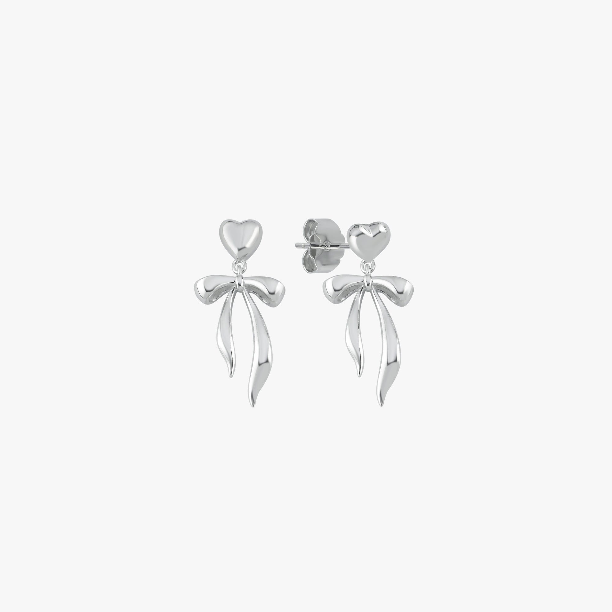 Heart Bow Ribbon Earrings | 925 Sterling Silver
