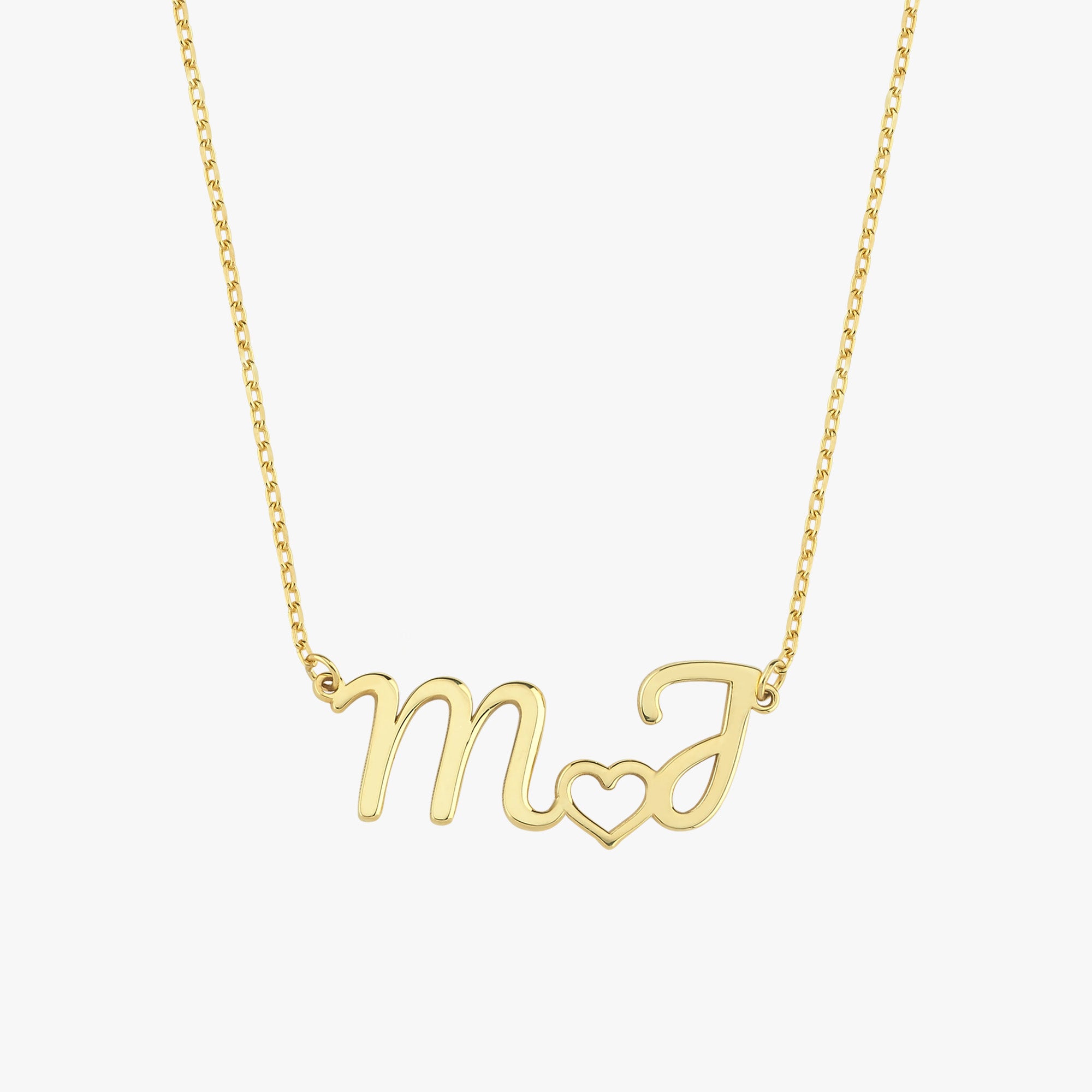 Custom Initial Necklace With Heart | 14K Solid Gold