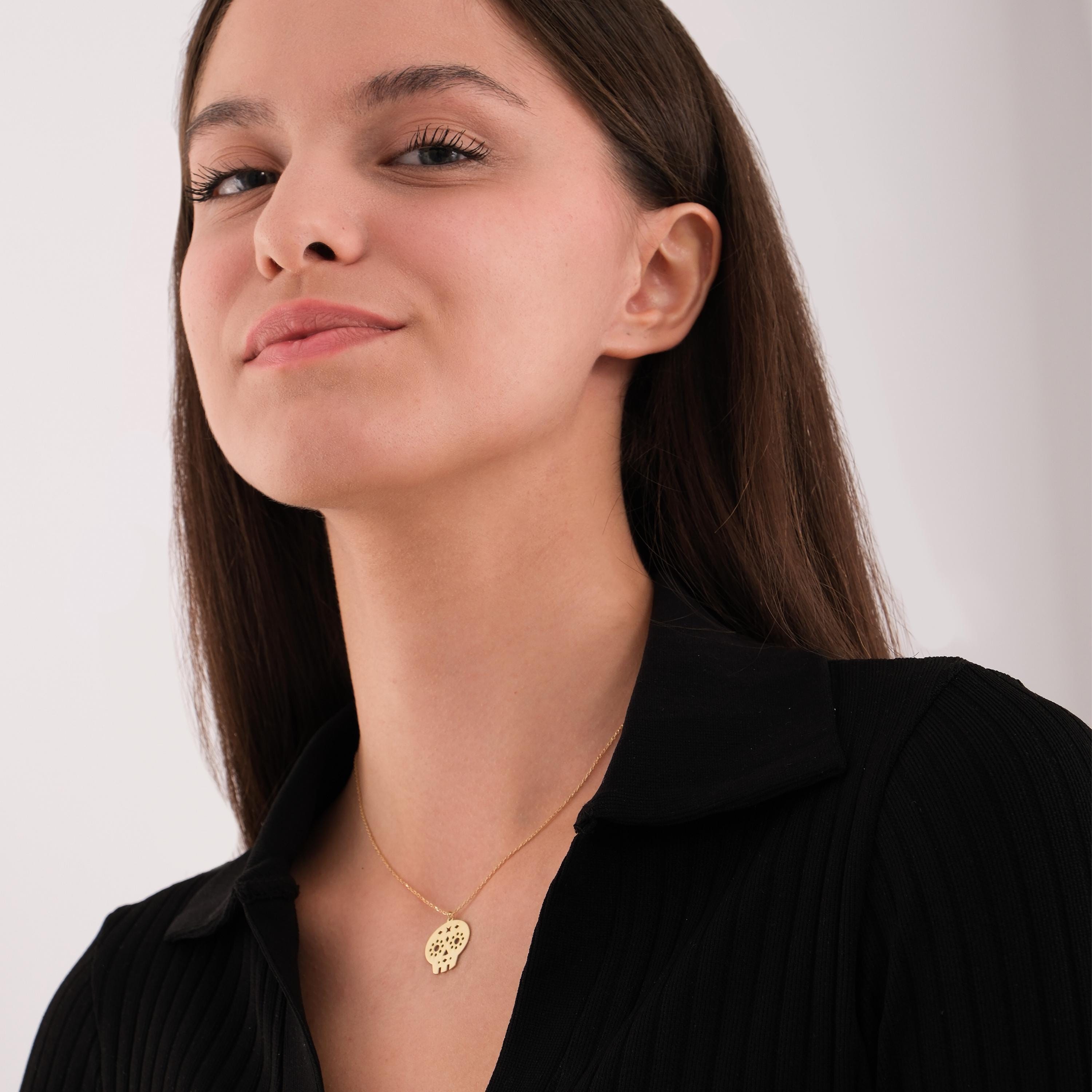 This Halloween skull necklace is available in two material options — 14K gold plated or 14K solid gold — and features a geometric skull pendant inspired by Día de los Muertos. Perfect as a gothic or Halloween gift.