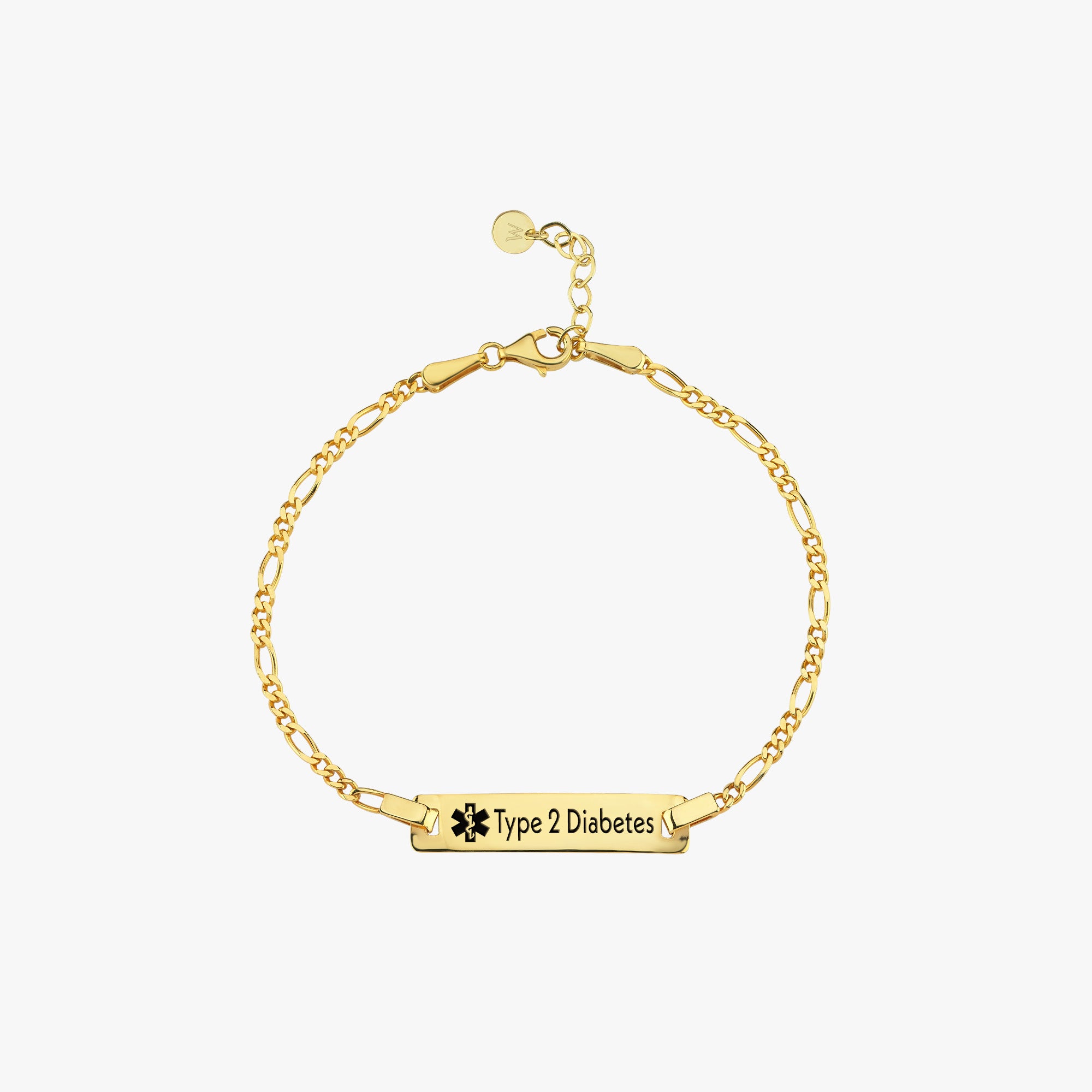 Available in 14K gold plated or 14K solid gold, this personalized bracelet can be engraved with any message of your choice. Whether used as a medical alert bracelet or a custom gift!