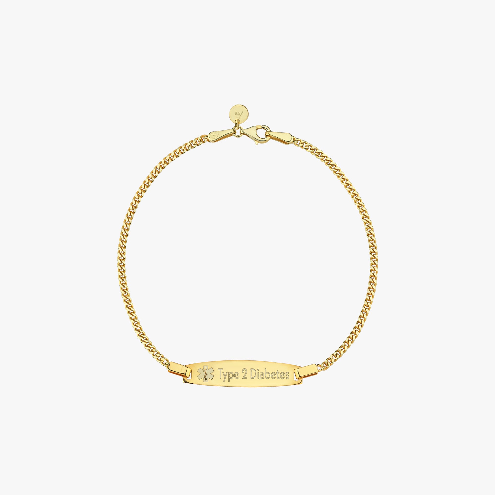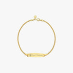 Stay safe in style with our Medical ID Bracelet, available in 14K solid gold or gold plated over sterling silver. Featuring a sleek 1-inch plate with a 0.5-inch engravable area, it's designed to hold essential medical details like conditions, allergies, or emergency contacts. A thoughtful and elegant life-saving accessory for yourself or someone you love.