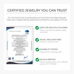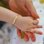 Introducing our Gold Personalized Baby Bracelet with Name — designed to celebrate the arrival of a new life. Crafted with attention to detail in your choice of 14K solid gold or gold plated over sterling silver, this elegant and meaningful bracelet features a 30mm x 5mm nameplate. A timeless keepsake, perfect for personalizing with your baby's name and a special symbol to cherish for years to come.