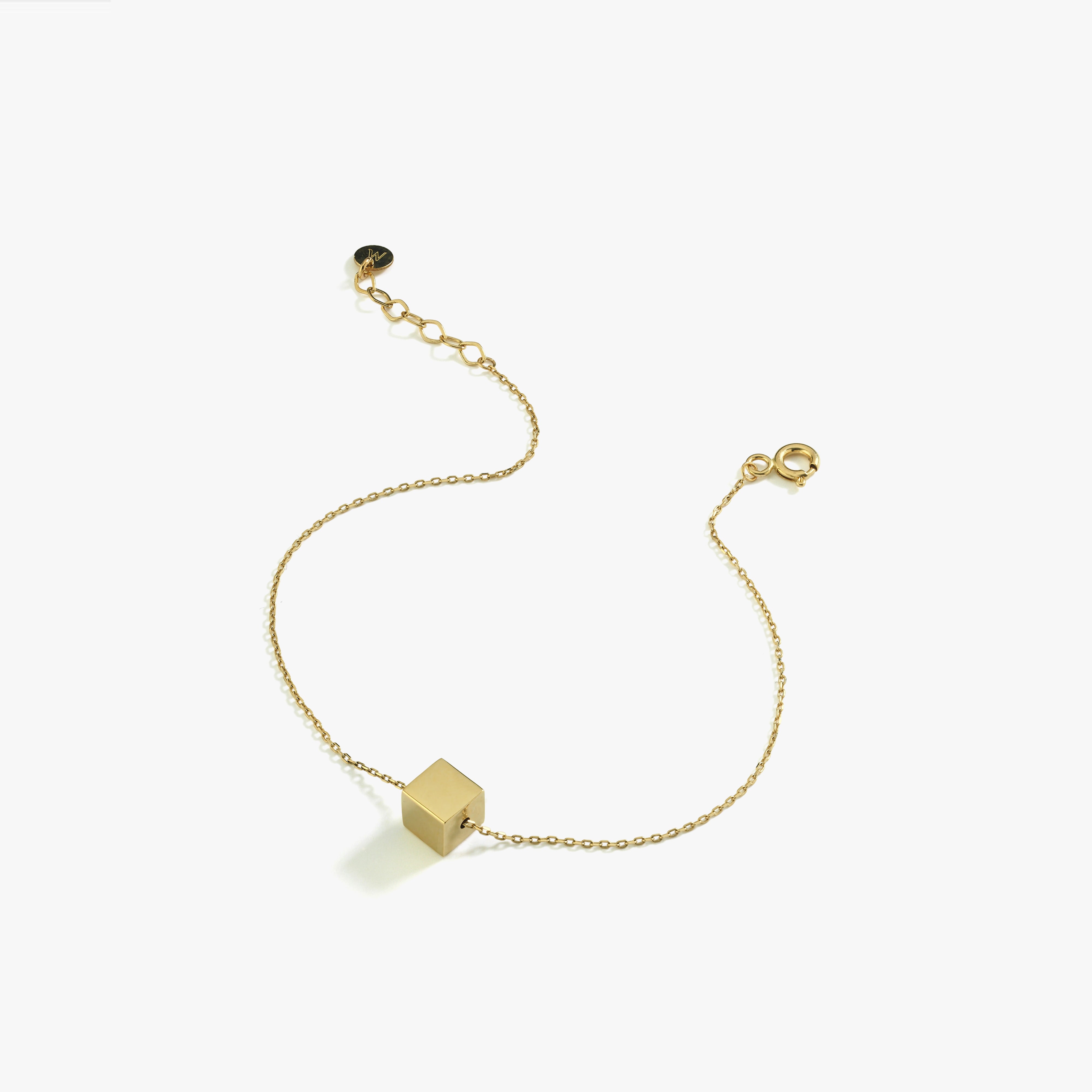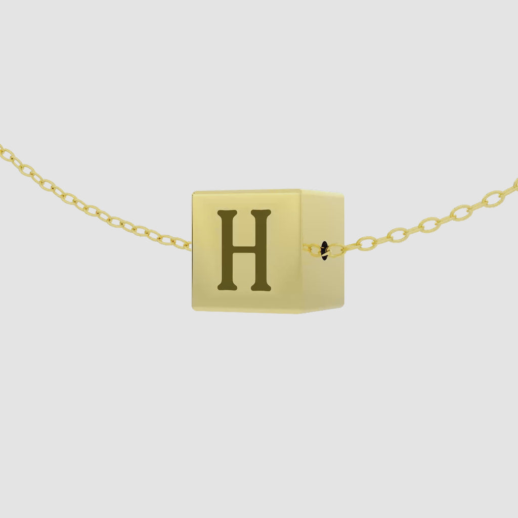 Celebrate individuality with our Cube Initial Bracelet, available in 14K Solid Gold or 14K gold plated over sterling silver. This minimalist piece features a 0.75-mm dice-shaped charm that can be customized with an engraving on one side—or up to four sides for added meaning. Set on a 7-inch cable chain with a 0.6-inch extension and spring ring closure, it's the perfect personalized gift for mothers or any special occasion.