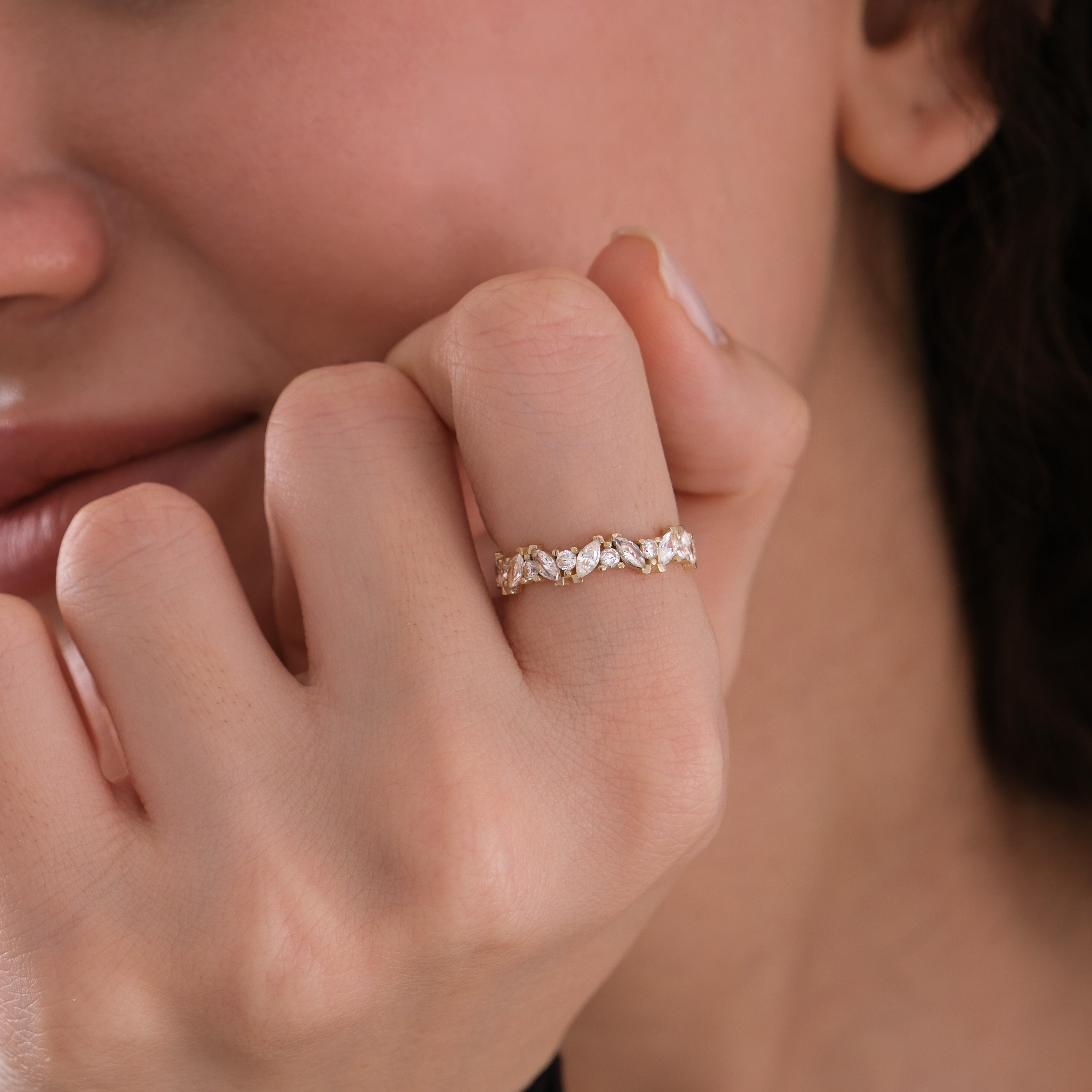 This exquisite leaf ring is crafted from 14K solid gold and adorned with marquise-cut cubic zirconia stones that mimic the delicate shape of leaves. The design beautifully captures nature’s elegance while maintaining a refined and luxurious look. Ideal for stacking or wearing alone, it makes a radiant Christmas gift.