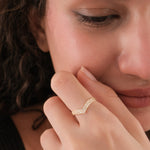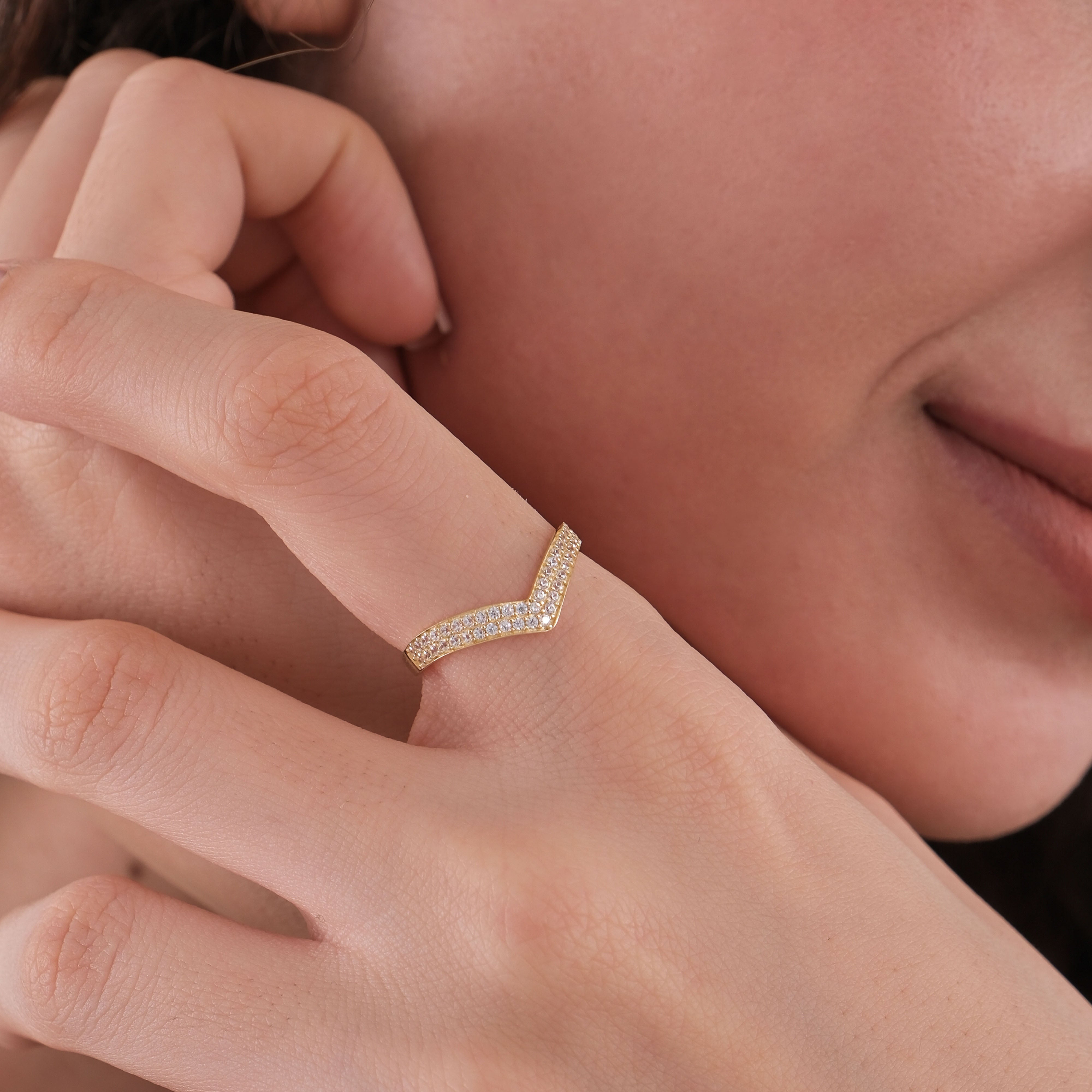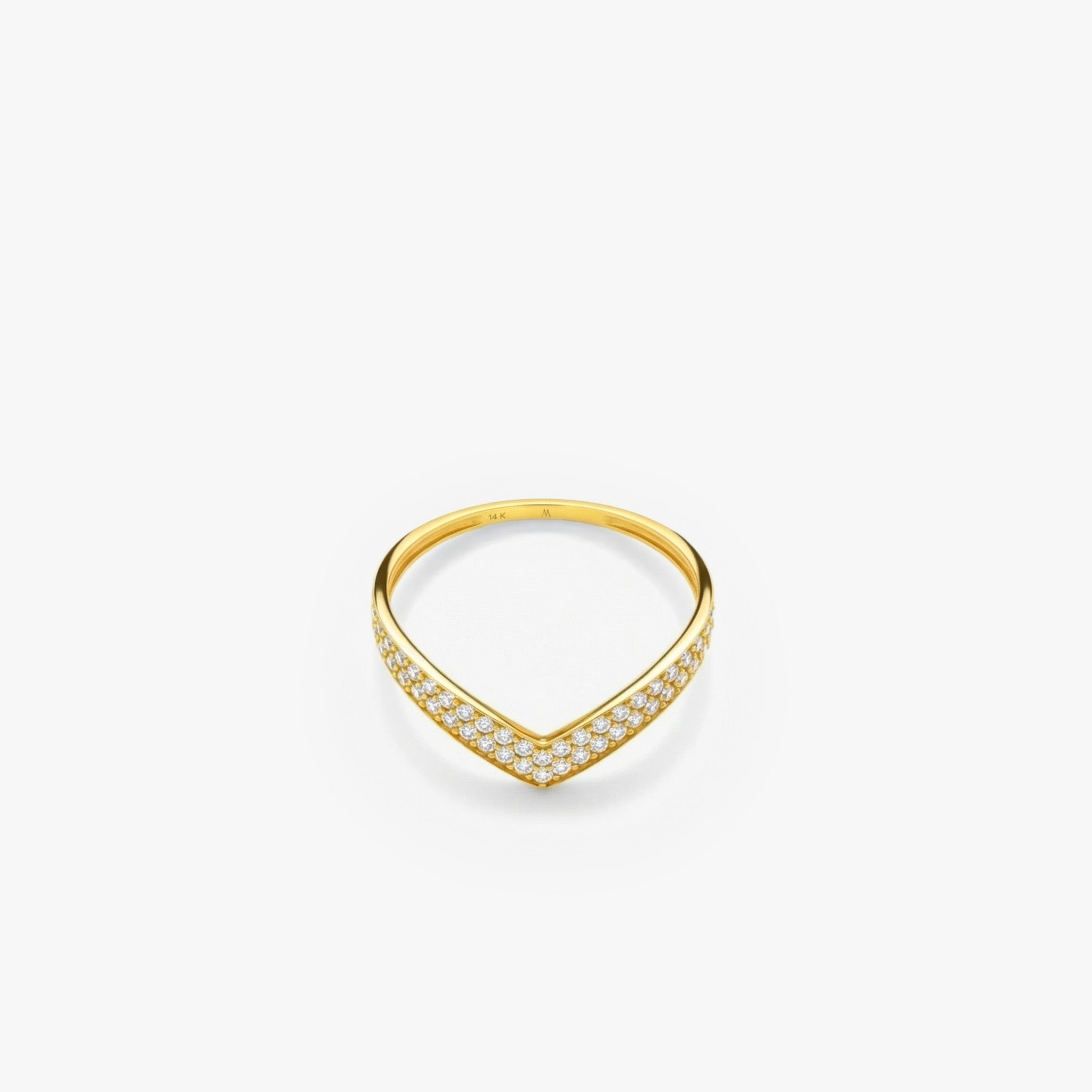 This exquisite Pave Chevron Ring is crafted from 14K solid gold and adorned with shimmering cubic zirconia stones that form a graceful V-shaped silhouette. Its elegant curve makes it ideal for stacking or as a wedding band complement. A refined and radiant choice — perfect for gifting this Christmas.