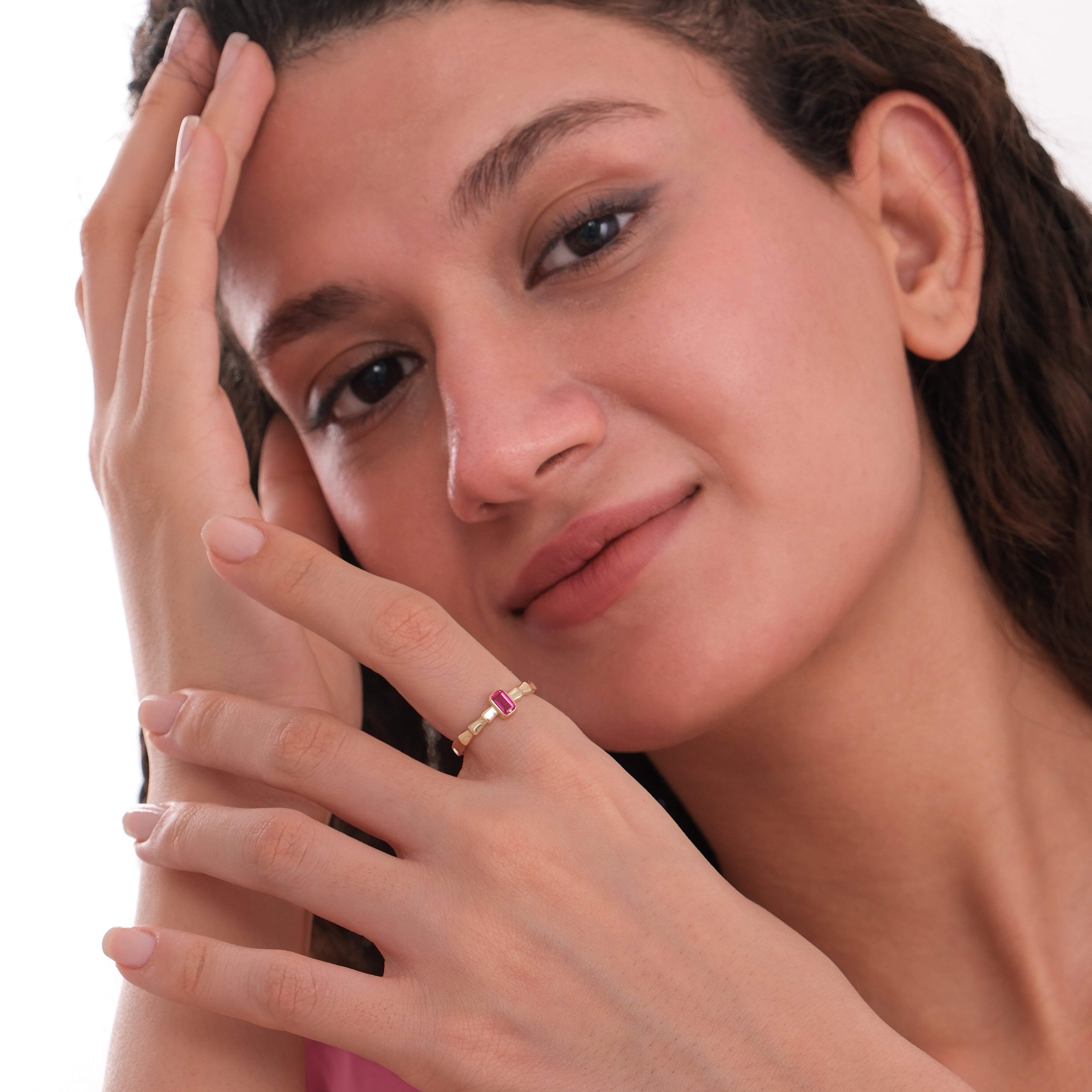 This stunning 14K Solid Gold Red Stone Ring showcases a bold square-cut red gemstone set on a sculpted geometric band. Its modern structure and radiant color make it a captivating piece for both everyday wear and special occasions. Whether worn alone or paired with other fine gold rings, this piece adds a touch of strength and passion — a perfect gift for someone unforgettable.