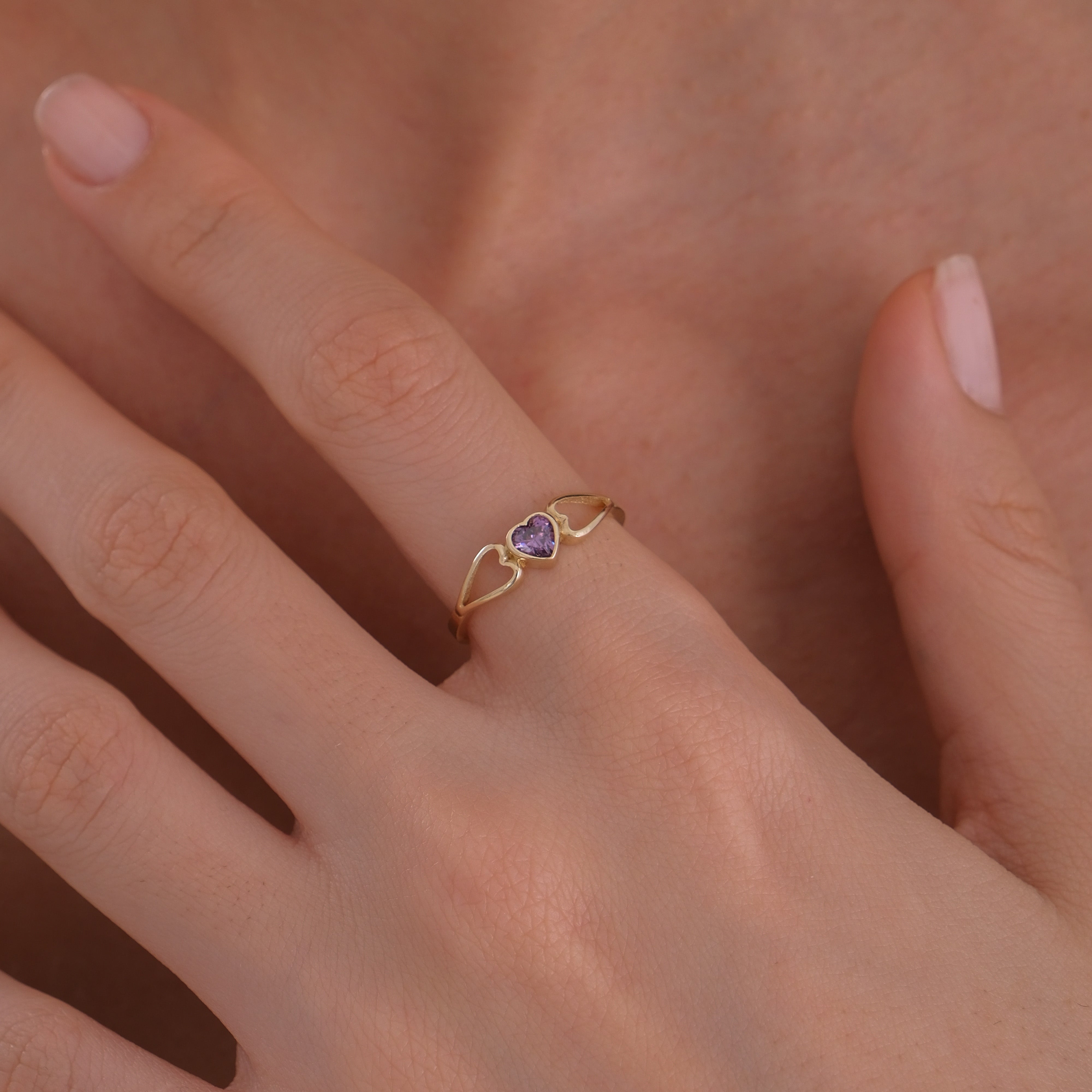 The Winged Heart Ring in 14K Solid Gold symbolizes freedom, love, and grace. Featuring a heart-shaped amethyst at its center, framed by elegant wing-like details, this ring beautifully blends romance and strength. A perfect gift for someone who follows their heart fearlessly or a personal reminder to let love soar.