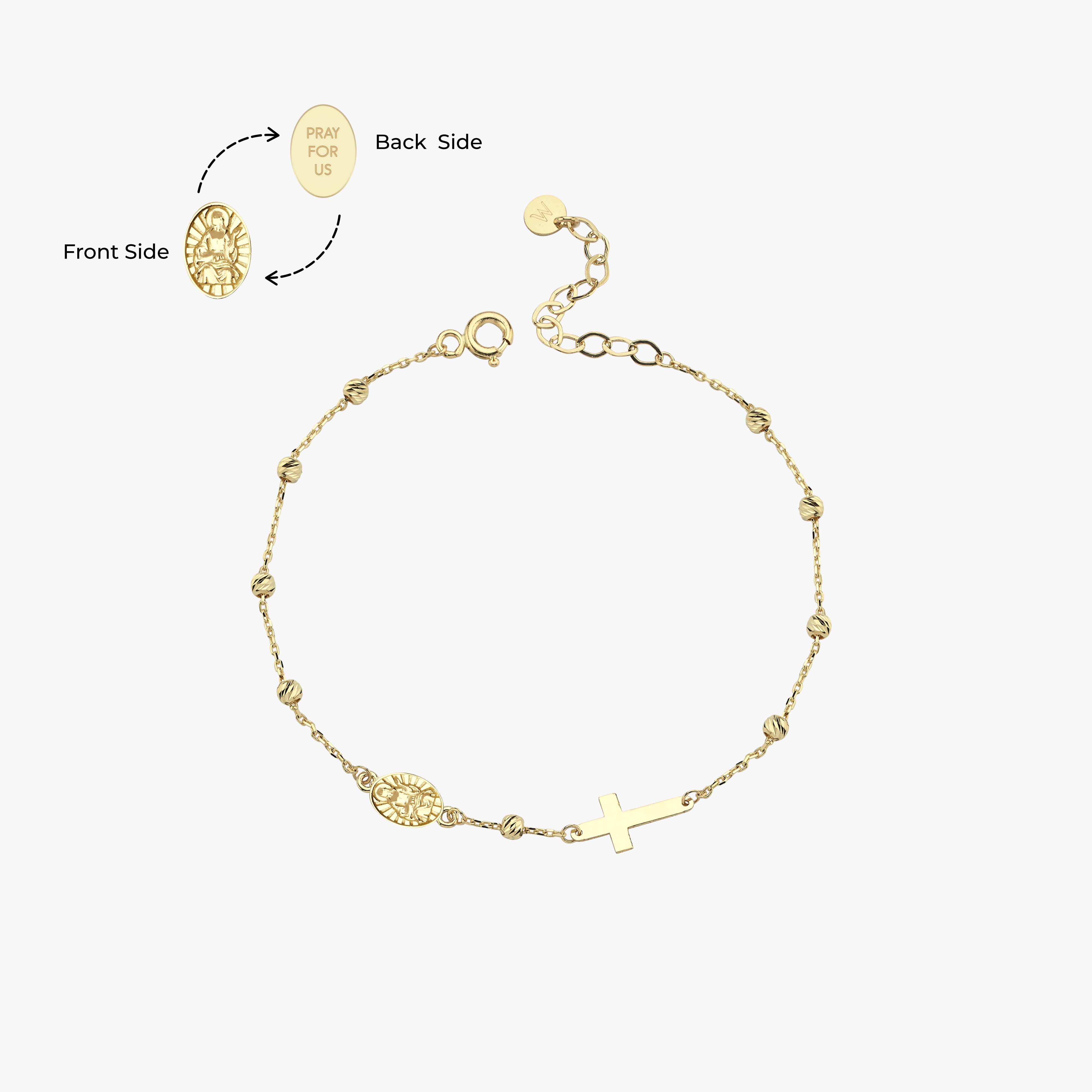 This 14K solid gold St. Cecilia Catholic bracelet features a beautifully engraved medal and a minimalist cross, symbolizing purity, devotion, and the divine power of music. Inspired by the patron saint of musicians, this bracelet is perfect for daily wear or as a meaningful gift. The adjustable chain offers a custom fit, making it both graceful and wearable.