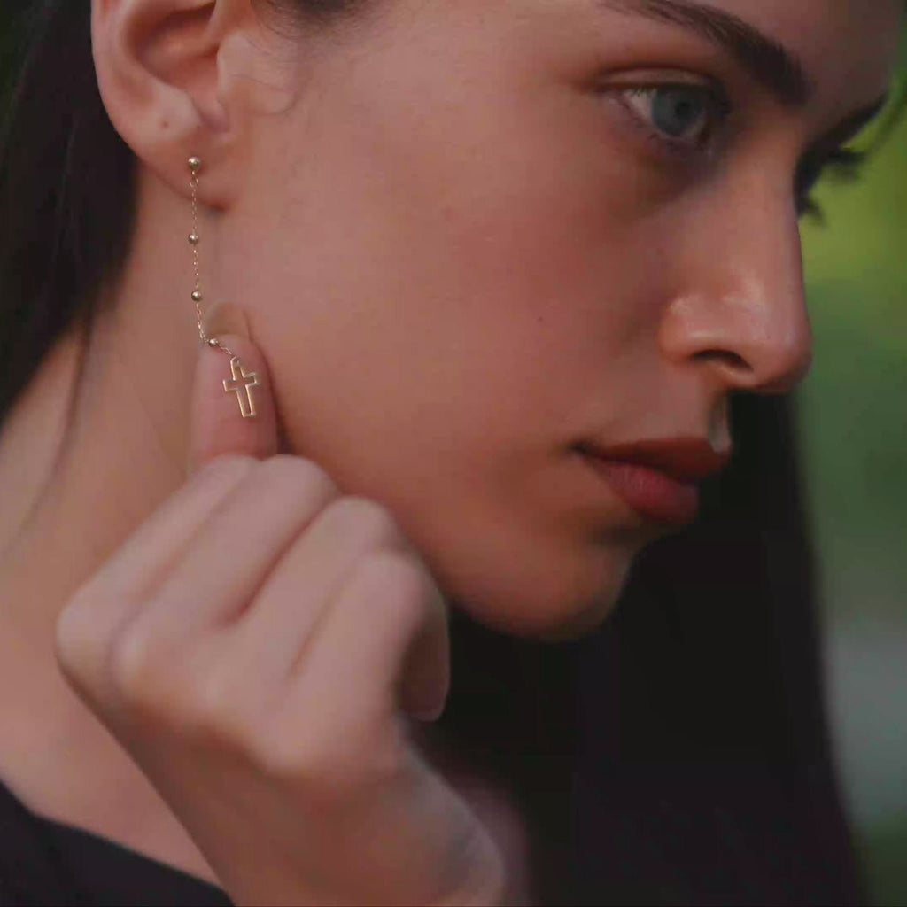 Elevate your style with our Dangle Cross Earrings, gold plated over sterling silver. These elegant earrings feature a delicate cross design that dangles gracefully, adding a touch of sophistication to any look. Perfect for both everyday wear and special occasions, they are a timeless and meaningful addition to your jewelry collection.
