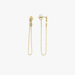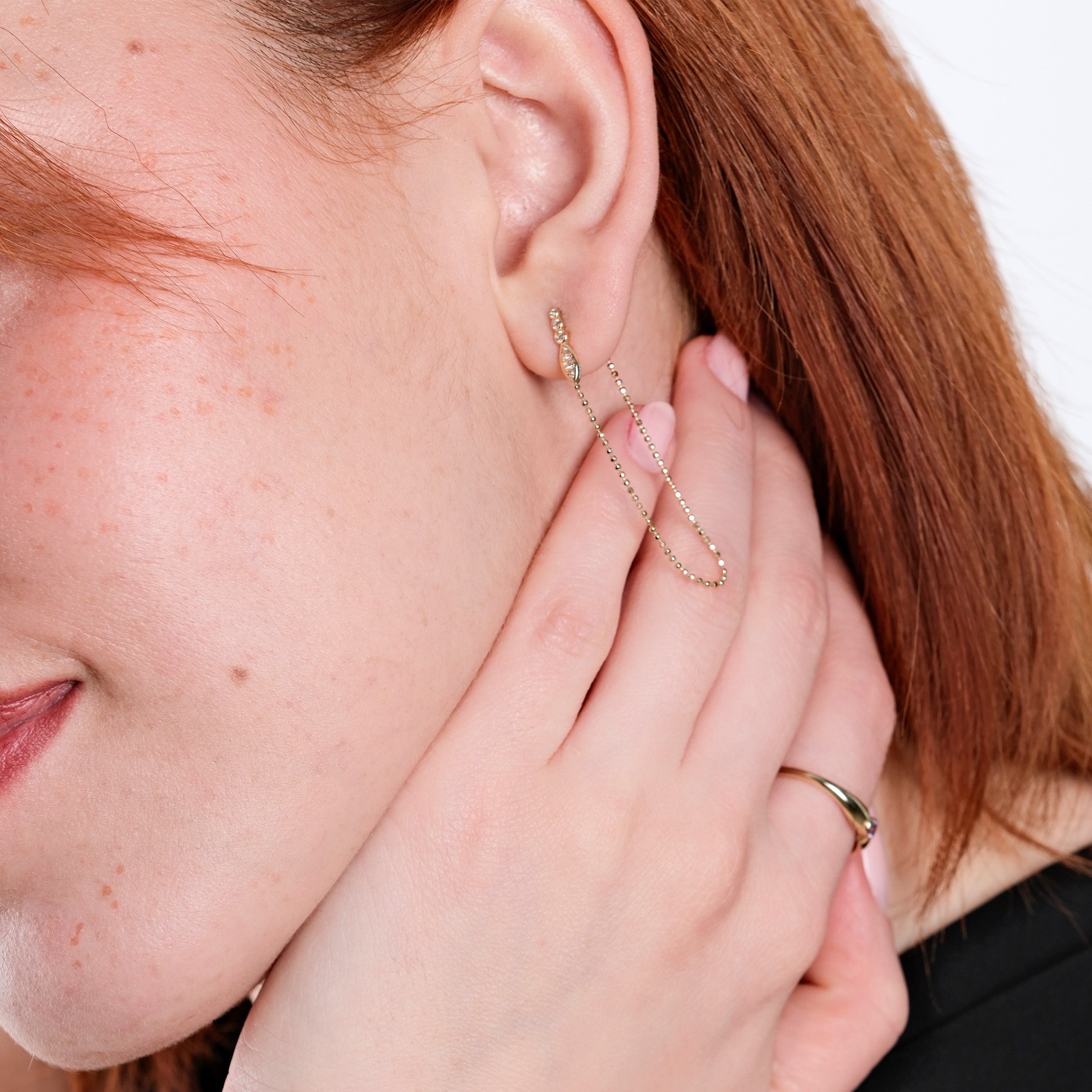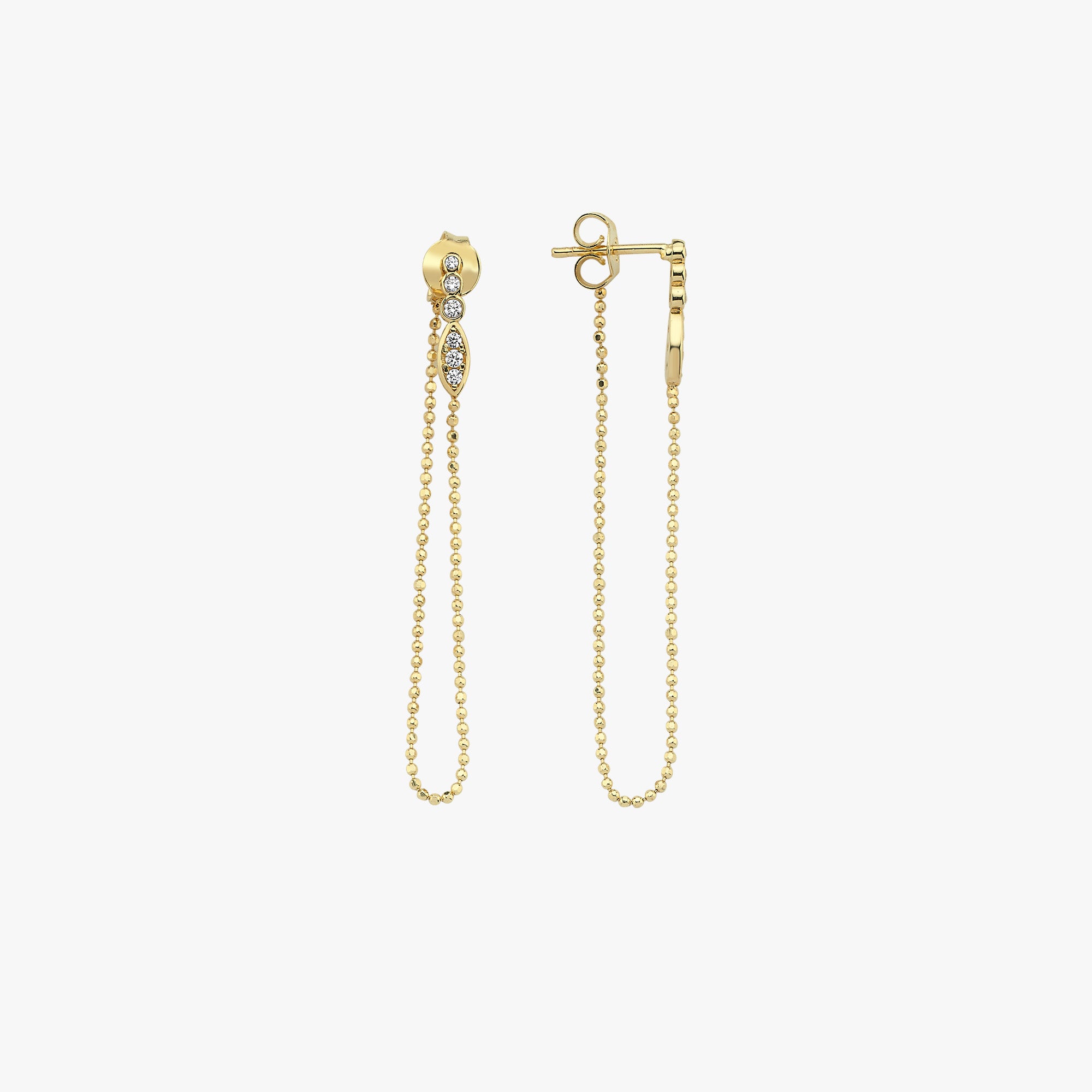 These earrings are made from 14K solid gold. Featuring a fine gold chain and a marquise-shaped charm accented with sparkling stones, they bring elegant motion and shine. Lightweight and stylish, perfect for adding a touch of sophistication to any look.