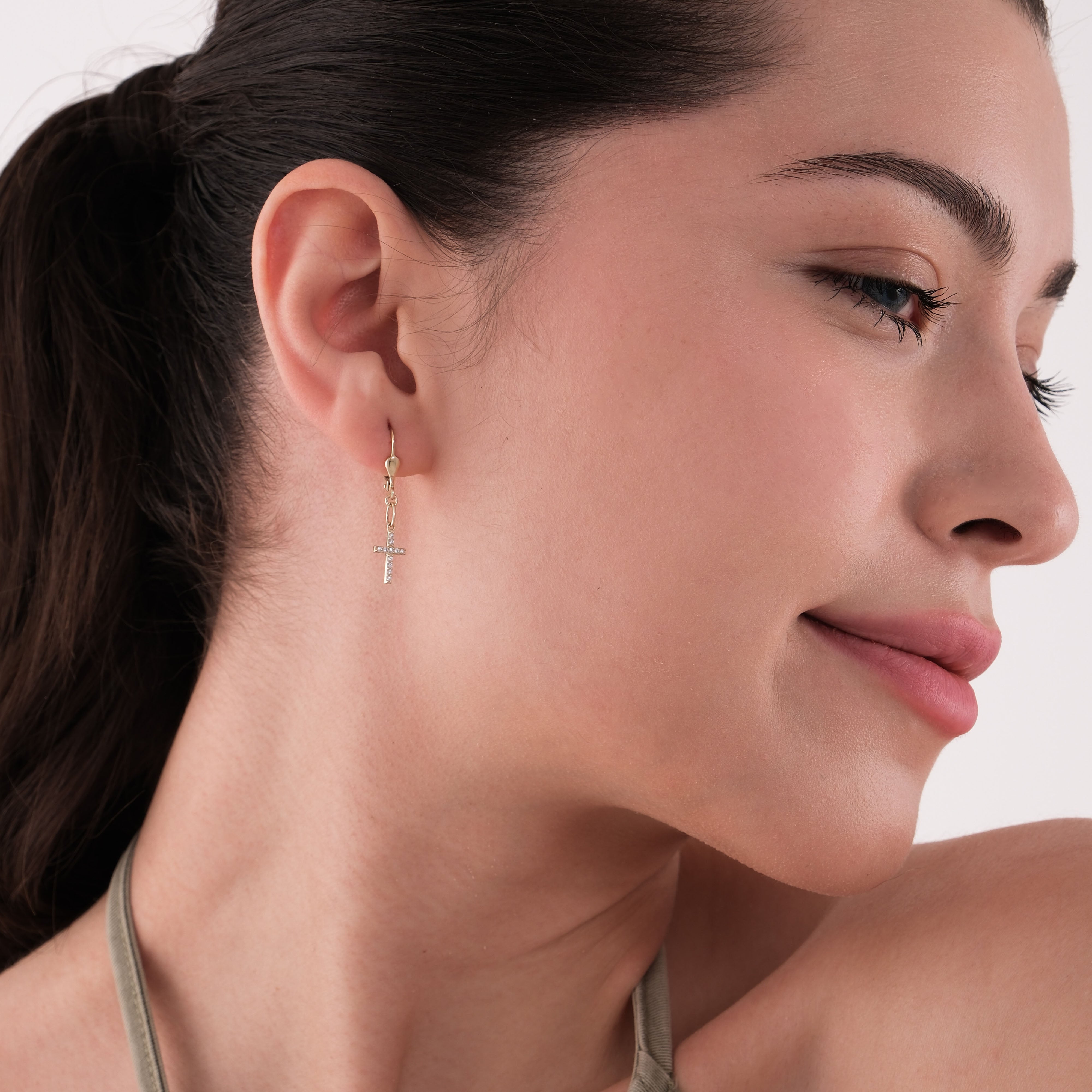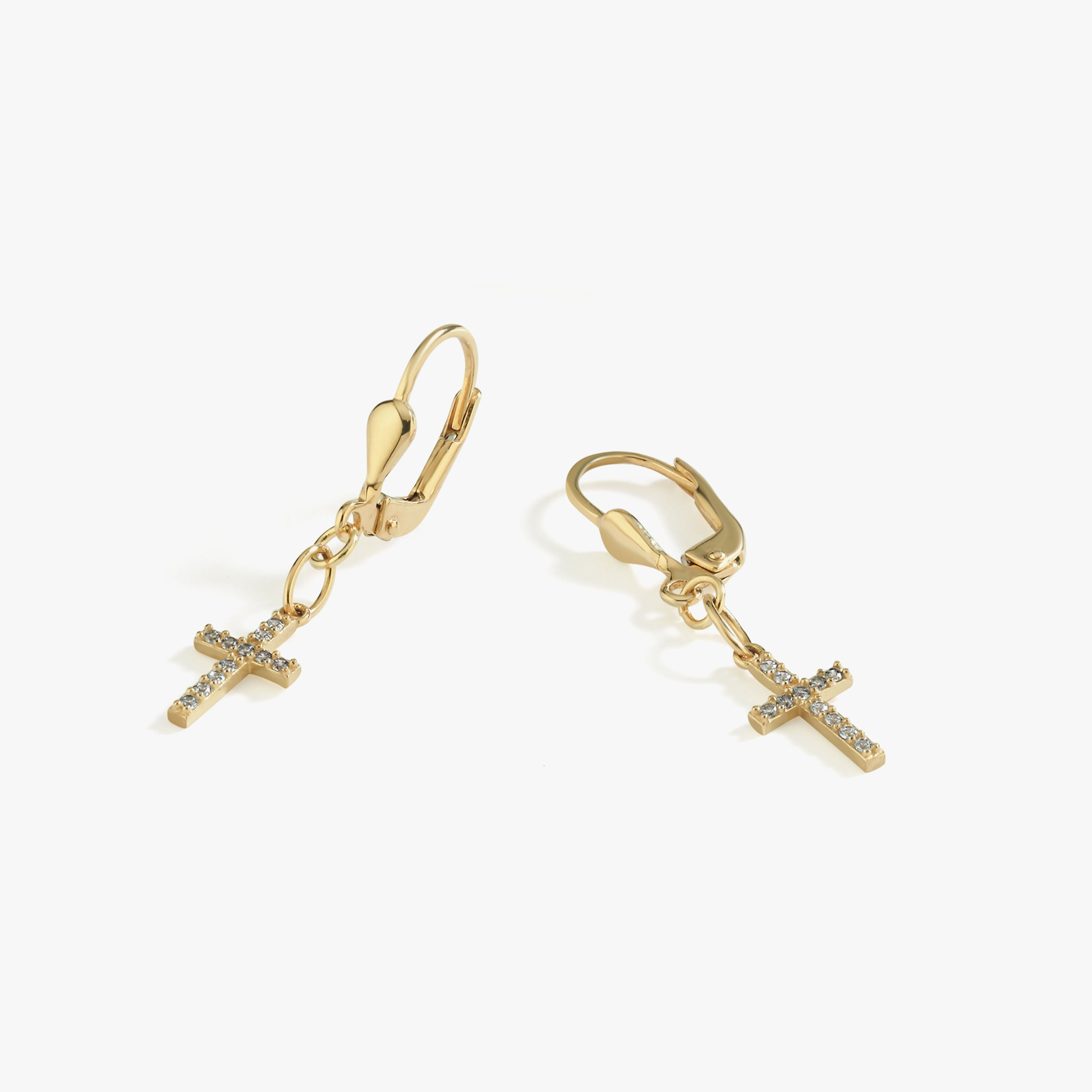 Crafted in 14K solid gold, these Leverback Cross Earrings blend timeless elegance with spiritual meaning. Featuring 0.5-inch sparkling cross charms that gently dangle from secure leverback hooks, they’re perfect for daily wear or special occasions. A meaningful and lasting gift for someone you cherish.