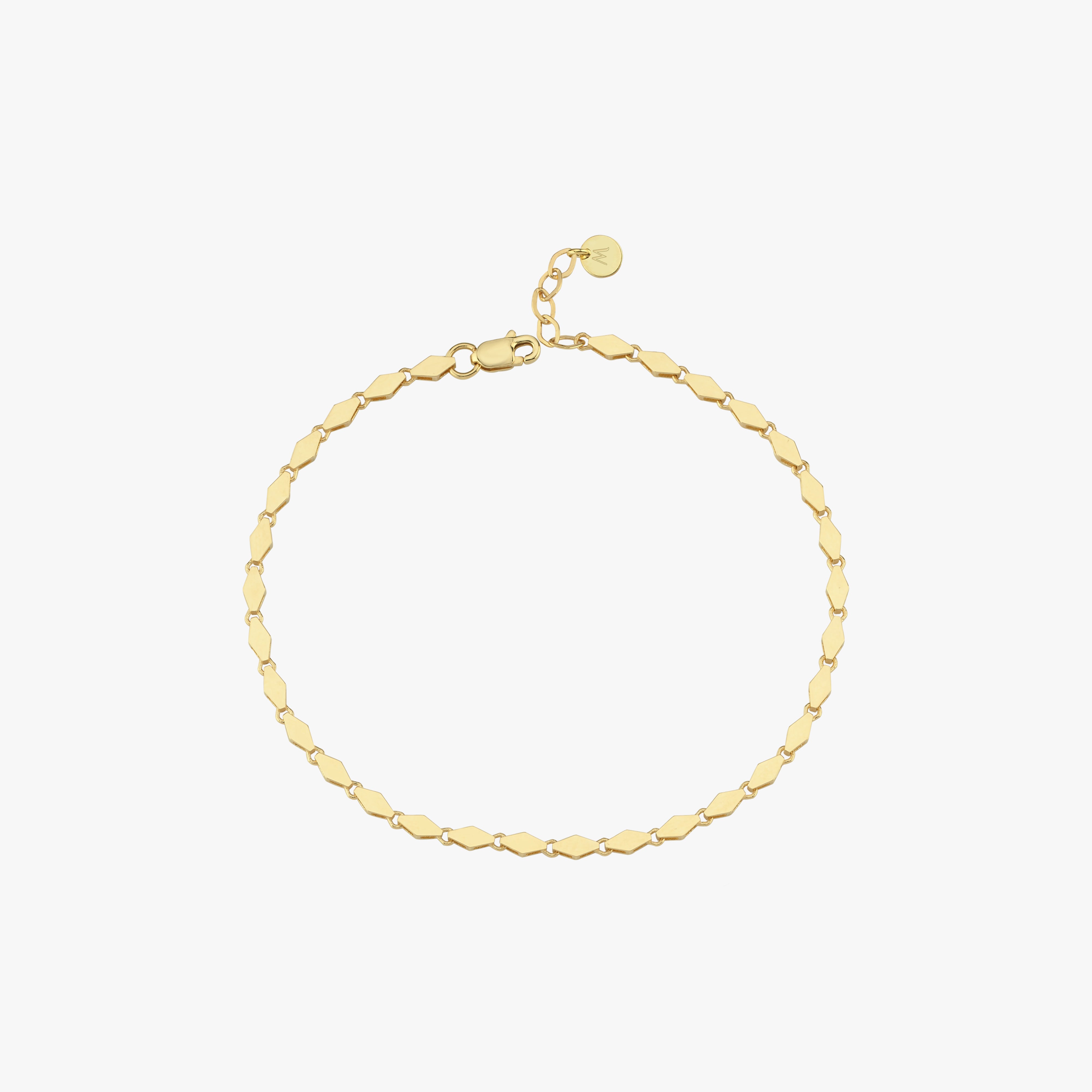 The chain bracelet is made of 14K solid gold and features a rhombus link design. Perfect for stacking.