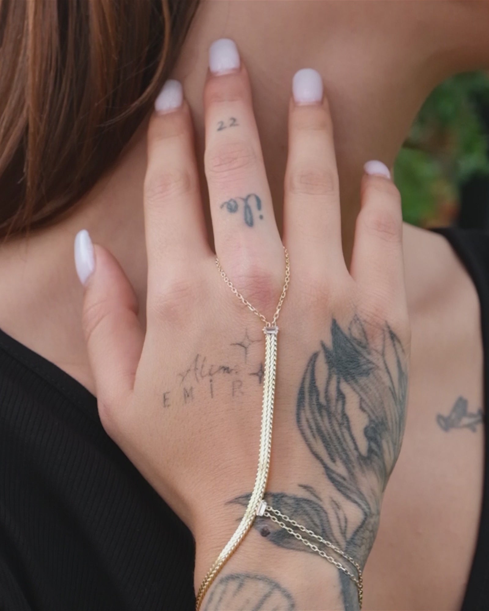 Discover the elegance of the 18K gold vermeil herringbone hand chain slave bracelet. A perfect Christmas gift!