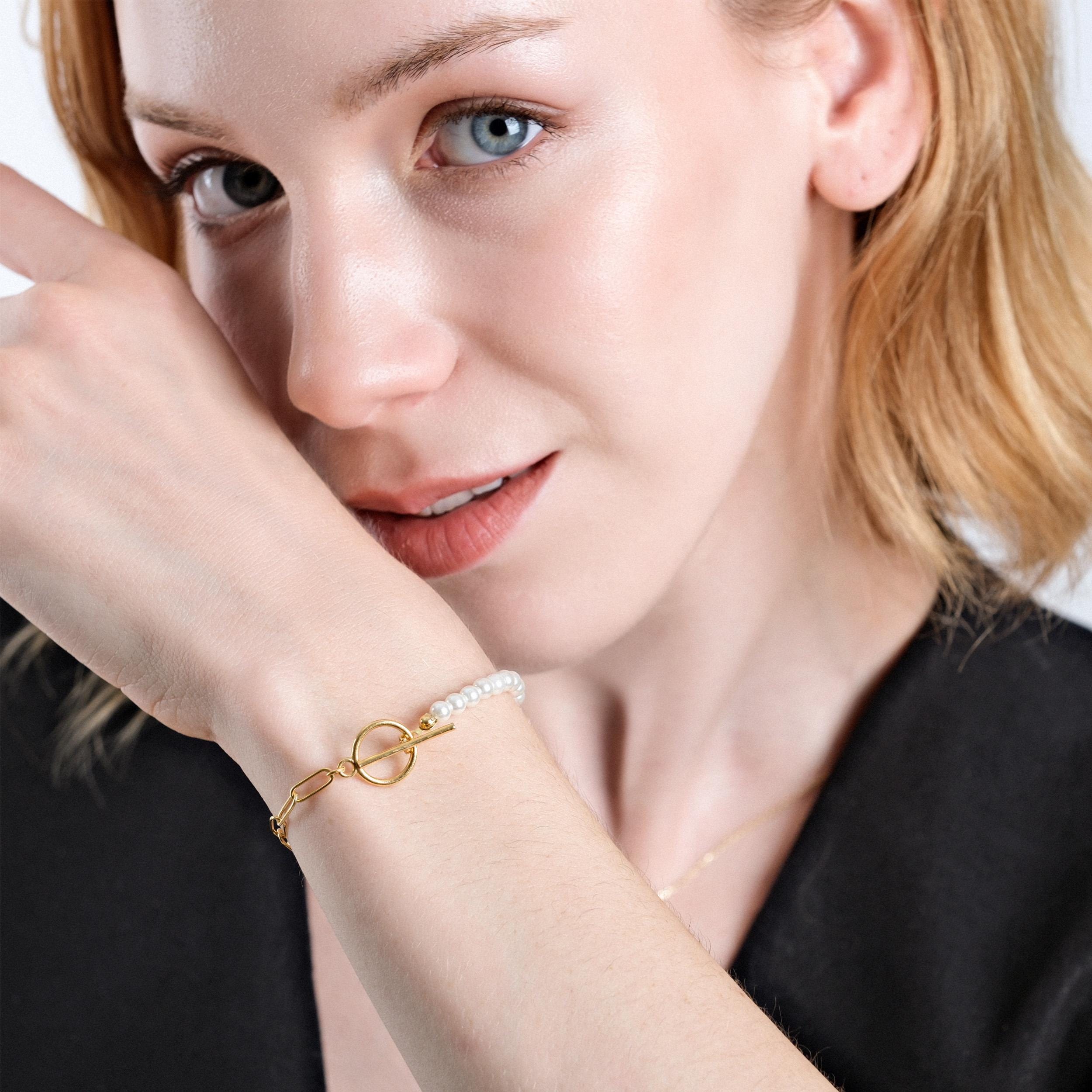 Celebrate love and strength with this stunning 18K gold vermeil paperclip bracelet, featuring a chic toggle clasp and a radiant pearl. Blending timeless elegance with a modern twist, it’s a meaningful piece for anyone who inspires you.