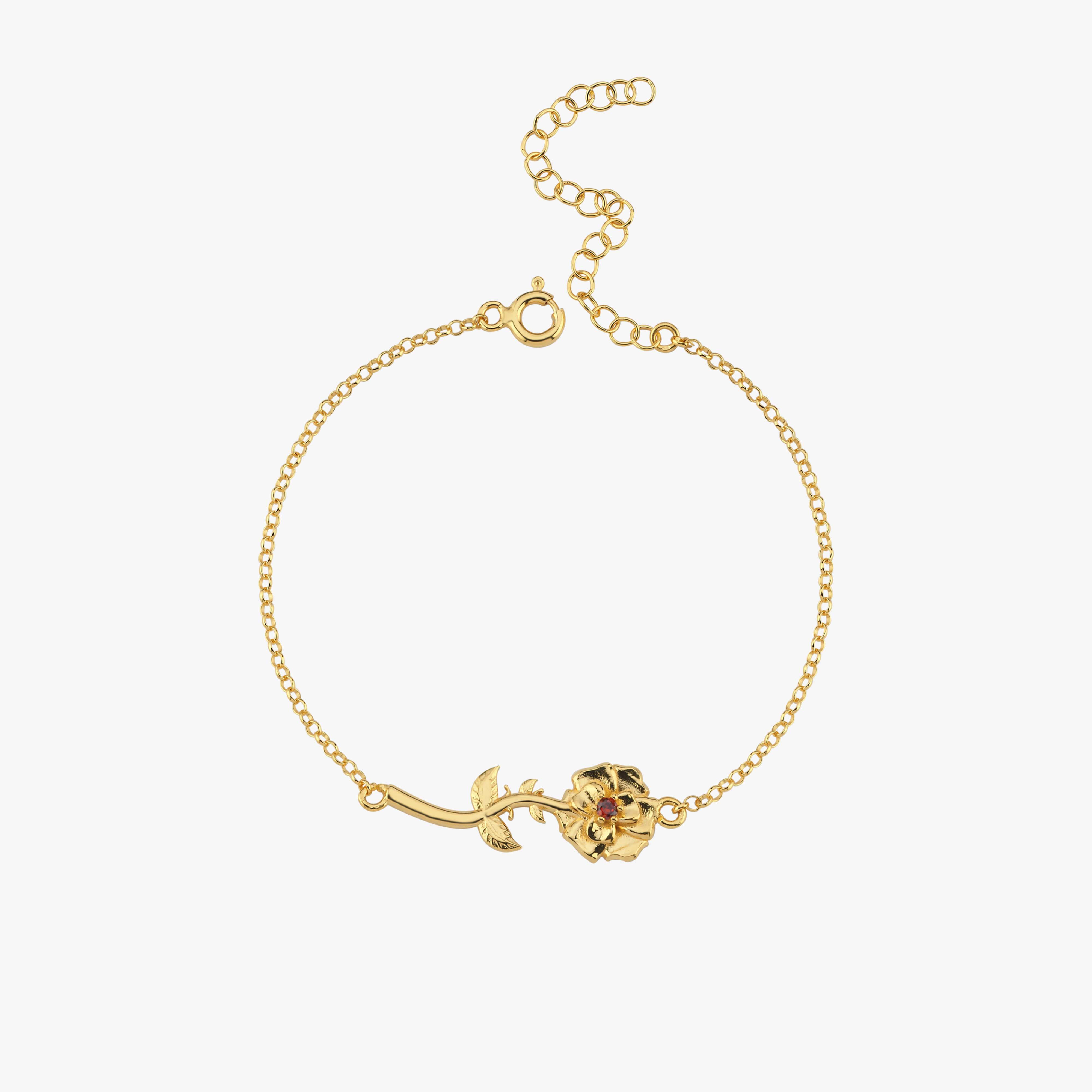 Celebrate January birthdays with our Birth Flower Bracelet, crafted in 18K gold vermeil on sterling silver. This elegant piece features a 0.5-inch rose charm adorned with a vibrant red stone at the center—symbolizing love and devotion. With an adjustable chain for the perfect fit, it’s a timeless and meaningful gift she'll cherish.