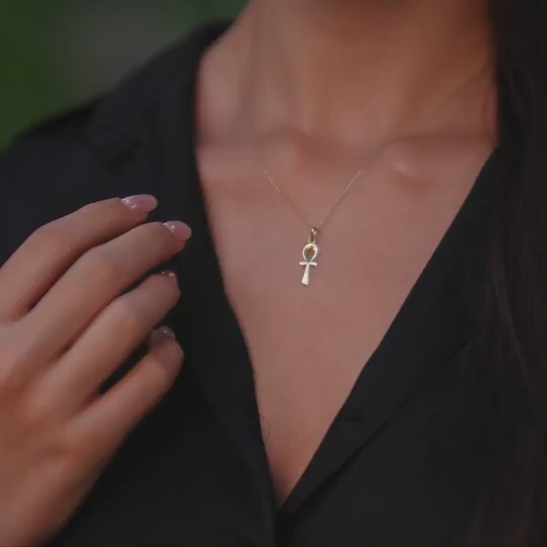 This beautiful ankh cross necklace has been handmade with love. The ankh represents eternal life, protection, and spiritual energyβan ancient symbol of the sun and rebirth. Crafted from 14K solid gold, this meaningful piece features a pendant measuring 29mm in height and 10mm in width. It comes in a beautiful gift box, making it perfect to give as a thoughtful and symbolic gift.