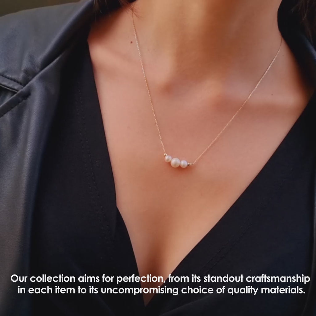 Experience timeless elegance with the Gold Triple Pearl Necklace. Crafted from 14k solid gold, this necklace combines modern charm with classic pearls, enhancing both casual and formal attire. Ideal for weddings or as a cherished gift, it symbolizes purity and grace, adding a refined touch to any outfit.