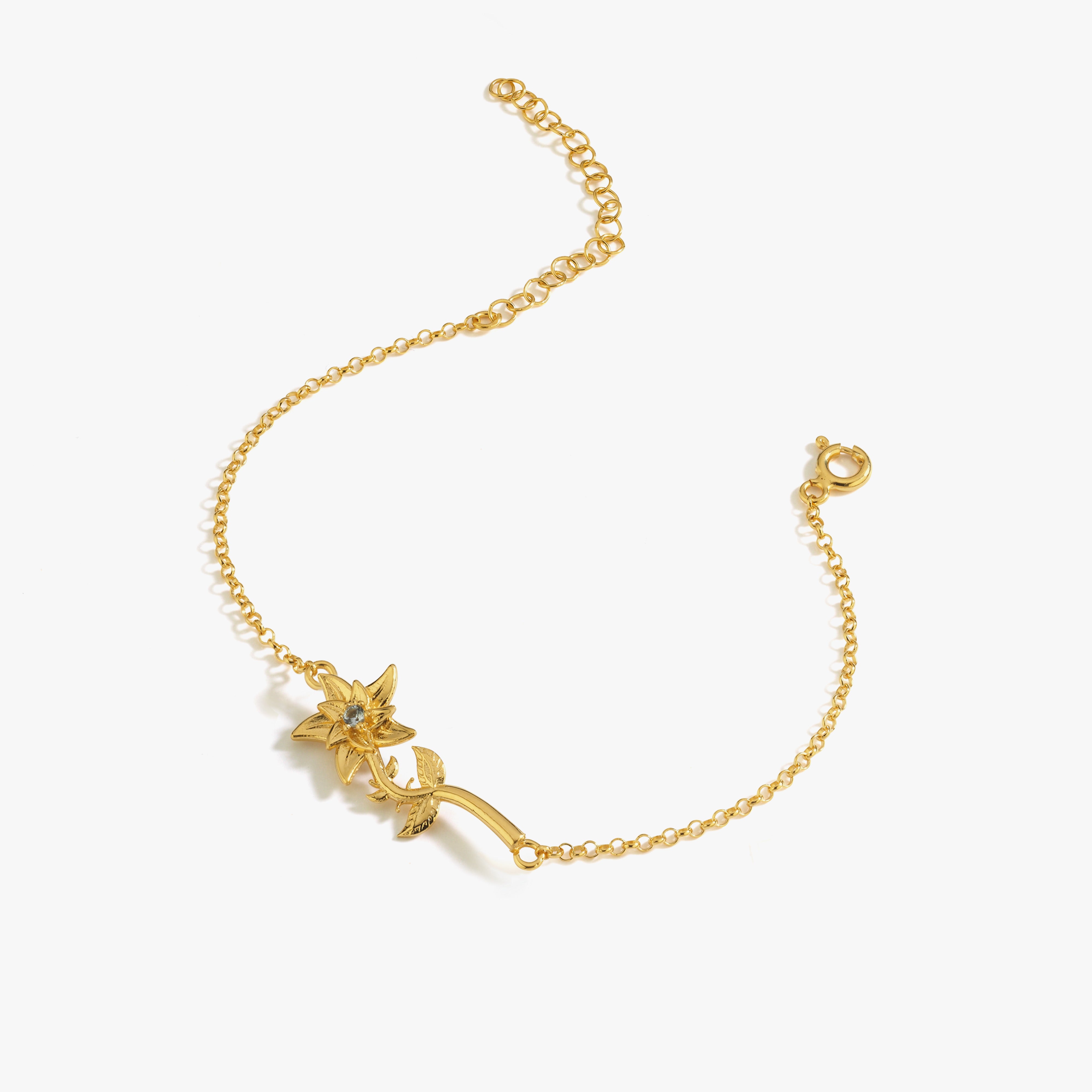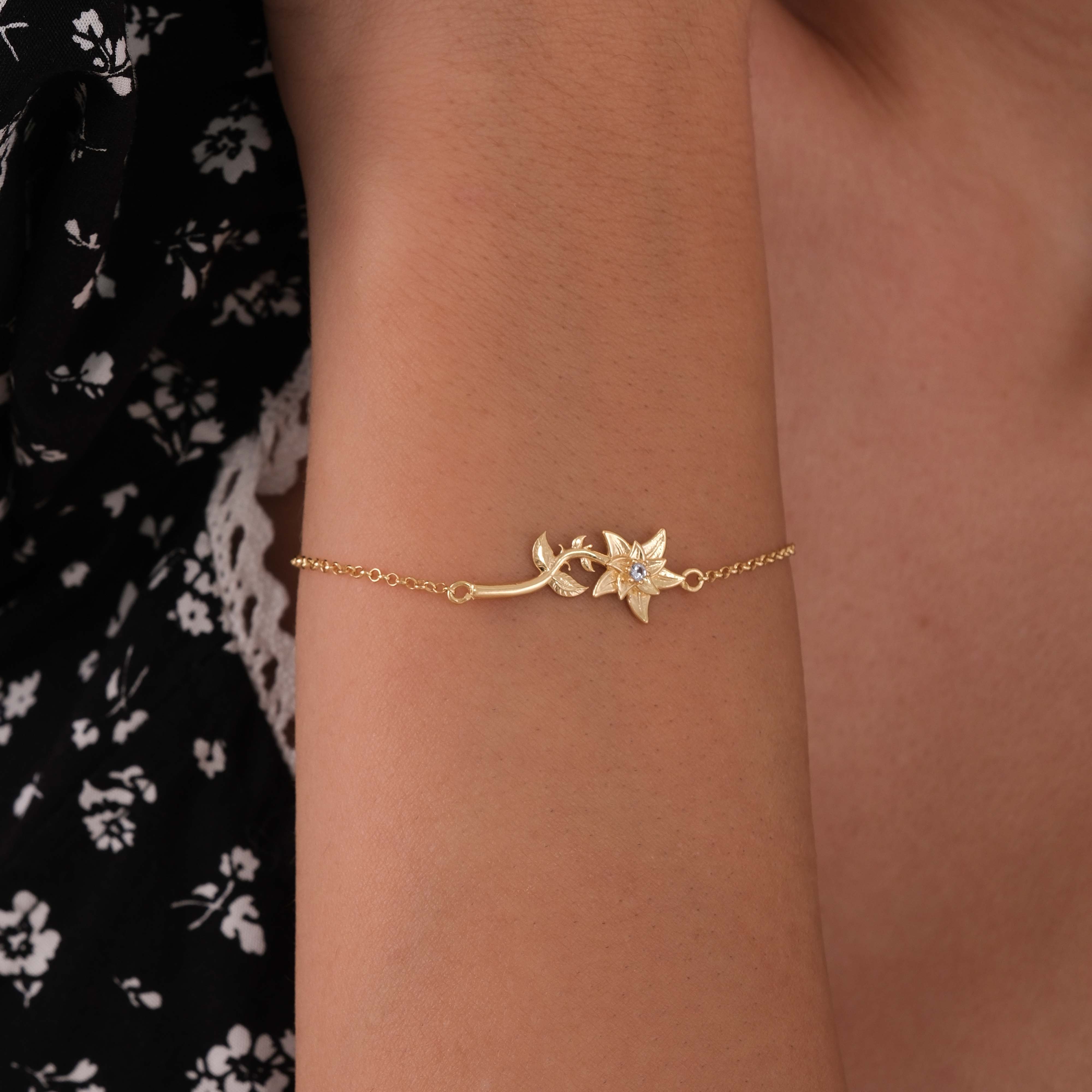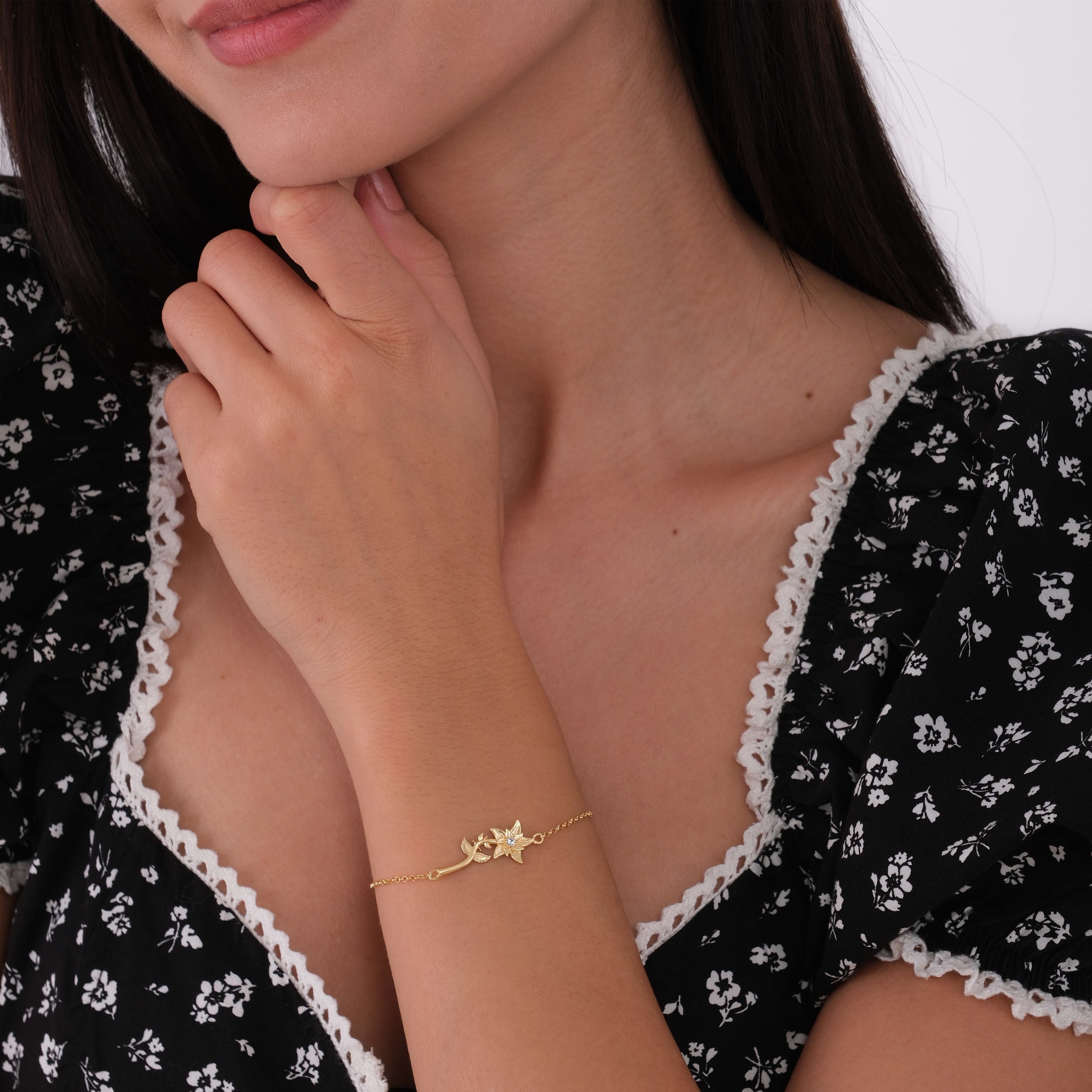 Celebrate March birthdays with this March Birth Flower Bracelet crafted in 18K gold vermeil. Designed with a delicate floral motif inspired by the monthβs birth flower, this bracelet features a sparkling cubic zirconia at its center, adding a subtle shimmer. Its adjustable chain ensures a comfortable fit, making it a perfect everyday accessory or a thoughtful birthday gift.
