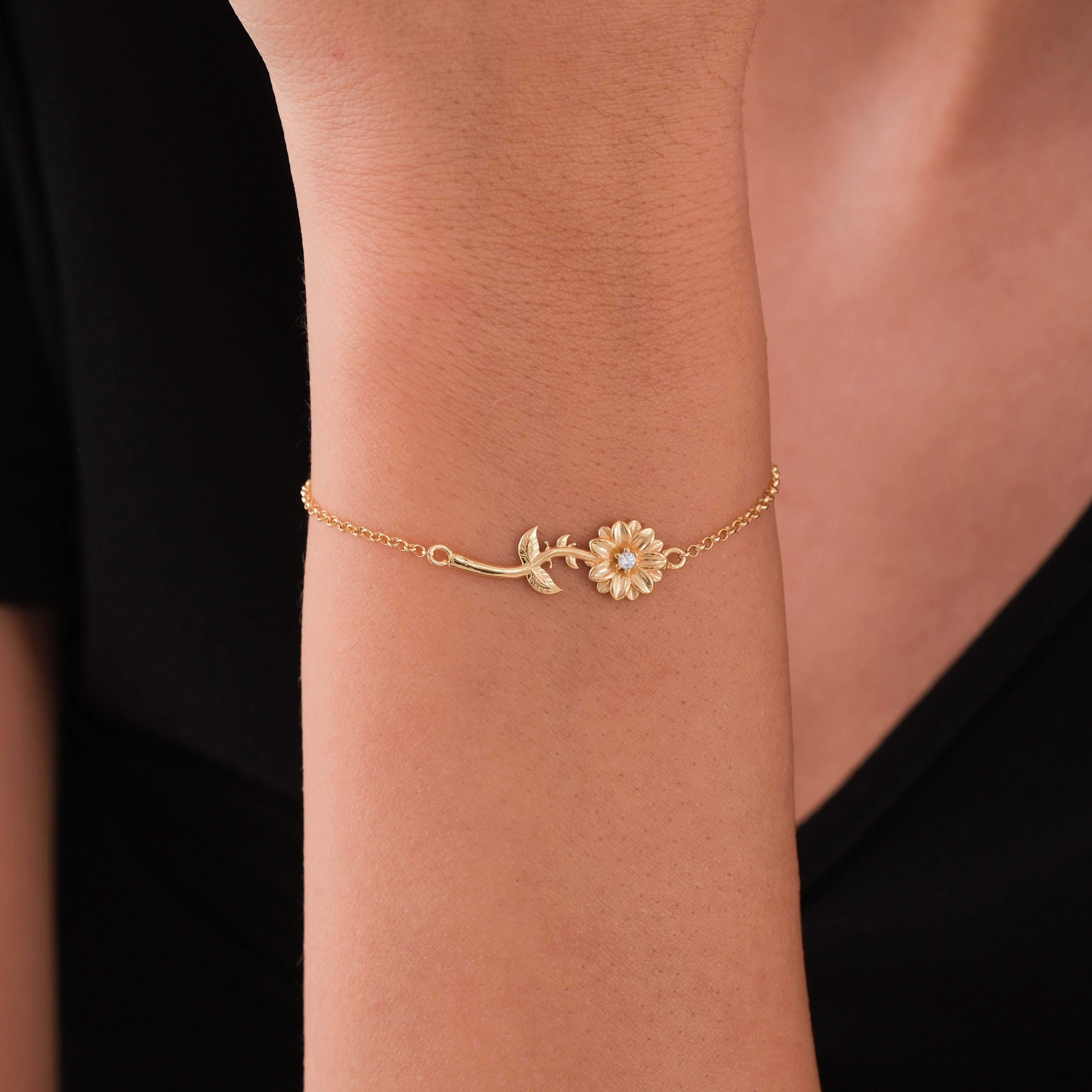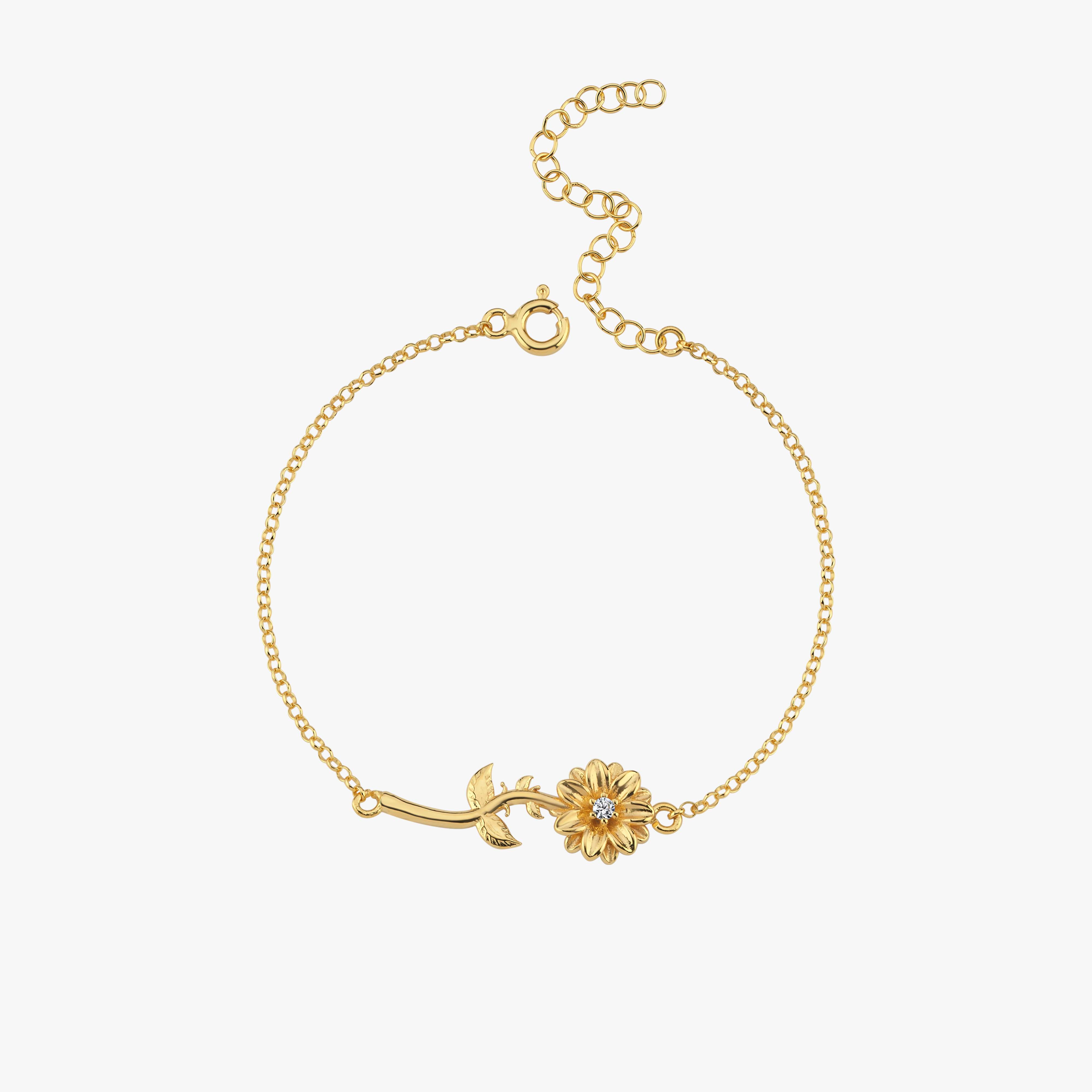Celebrate April birthdays with the delicate charm of this April Birth Flower Bracelet. Crafted in 18K Gold Vermeil, the design features a finely detailed daisy flower, symbolizing purity and new beginnings. At the center, a sparkling cubic zirconia stone adds a subtle brilliance, making this piece a meaningful gift or a personal keepsake. Lightweight and versatile, it’s perfect for layering or wearing solo.