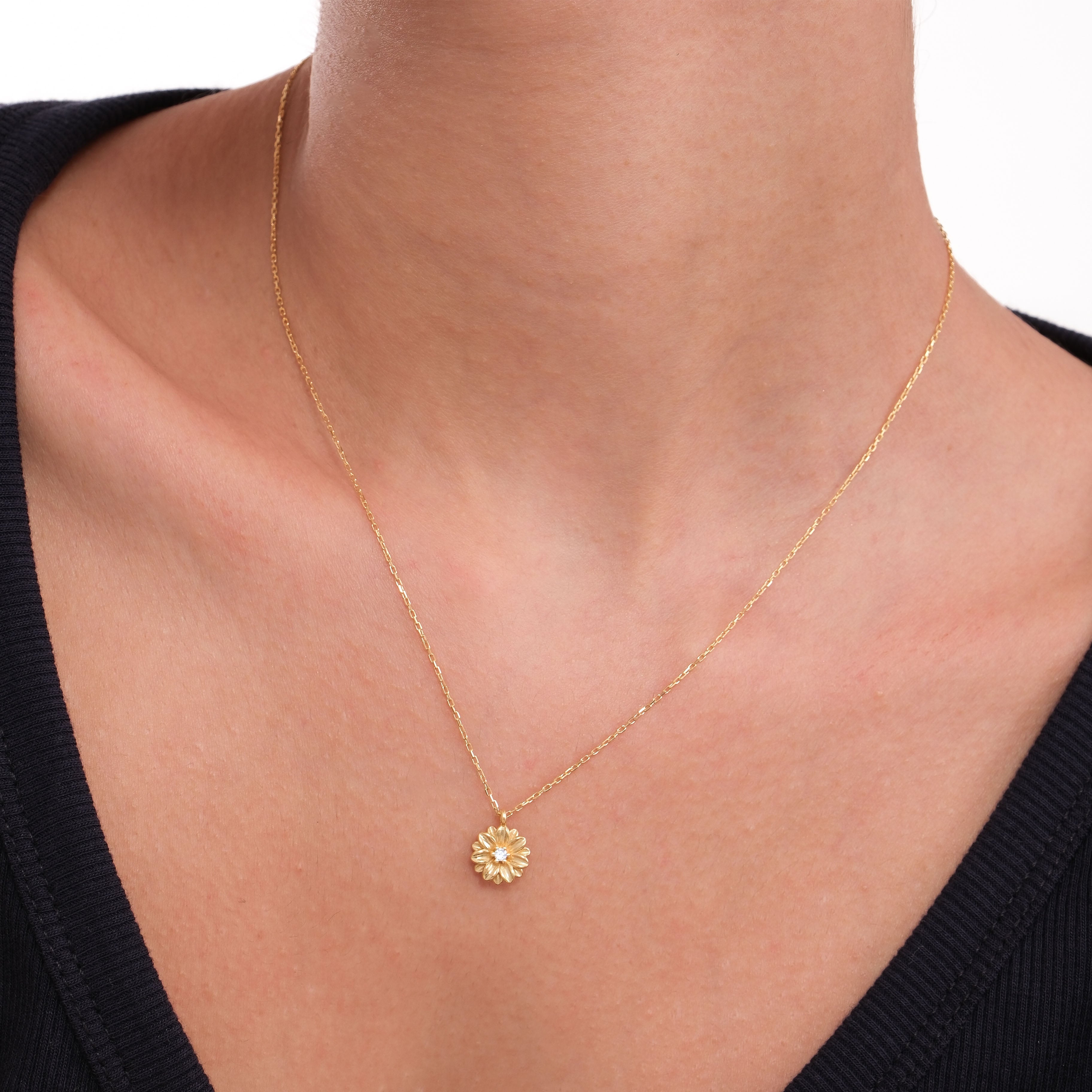 Celebrate April birthdays with our elegant April Birth Flower Necklace, crafted in 18K gold vermeil on sterling silver. Featuring a 0.5-inch floral pendant accented with a bright clear stone, this piece symbolizes purity and strength. A timeless accessory perfect for everyday wear or as a meaningful birthday gift.
