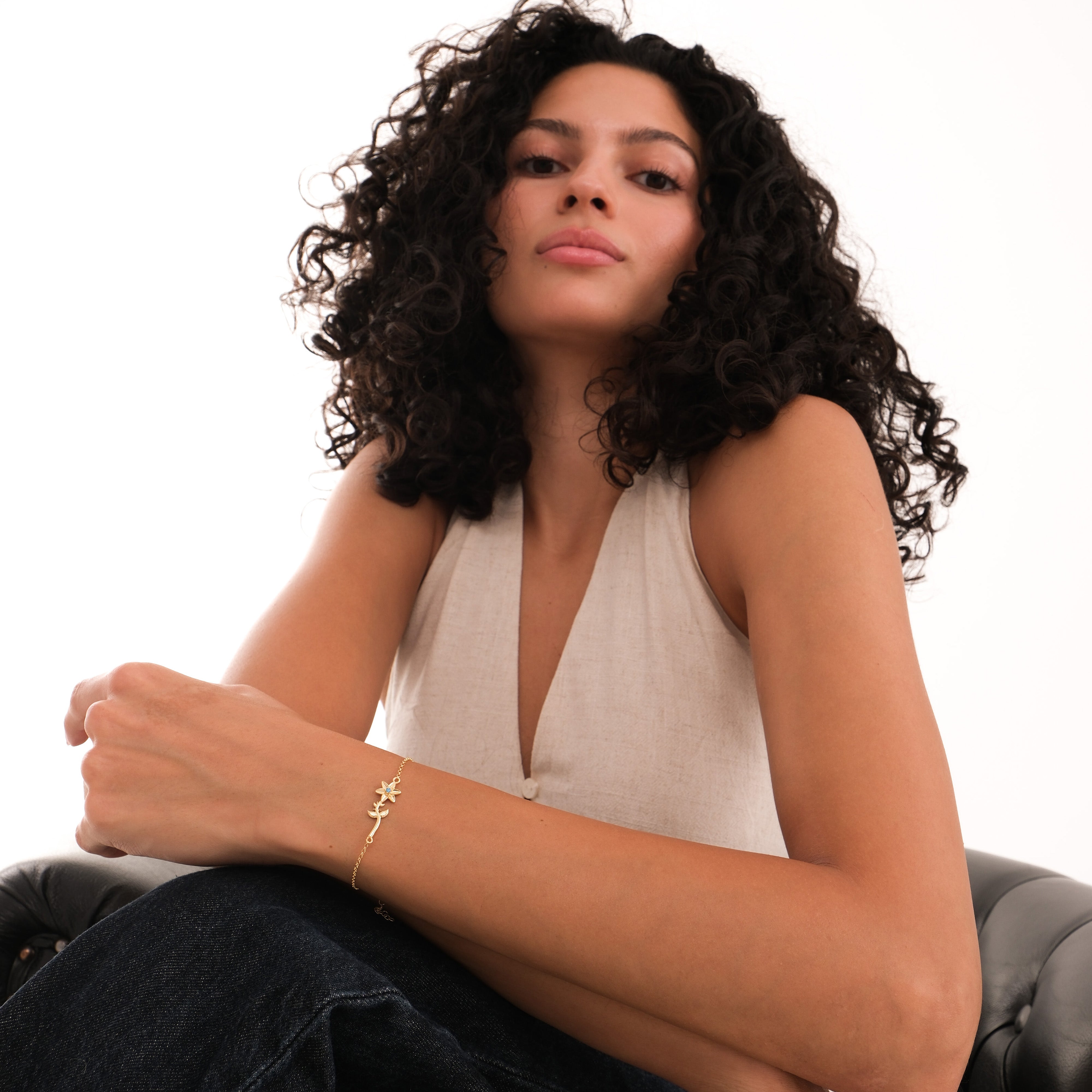 Celebrate January birthdays with this beautifully crafted birth flower bracelet. Featuring a delicate rose design adorned with a sparkling garnet-inspired stone, this 18K Gold Vermeil bracelet symbolizes love, devotion, and new beginnings. Its adjustable chain ensures a perfect fit, making it an ideal keepsake gift for her birthday or special occasions.