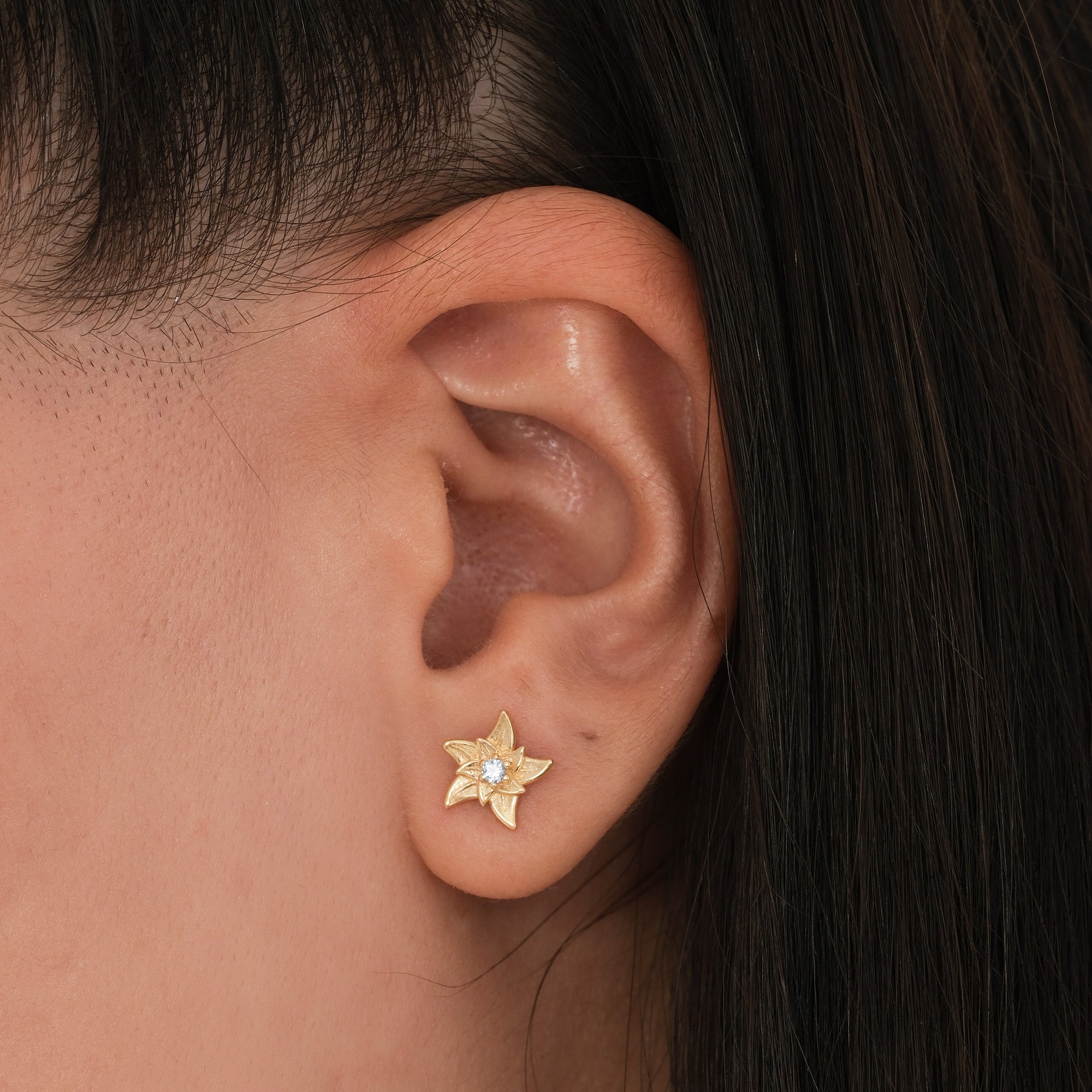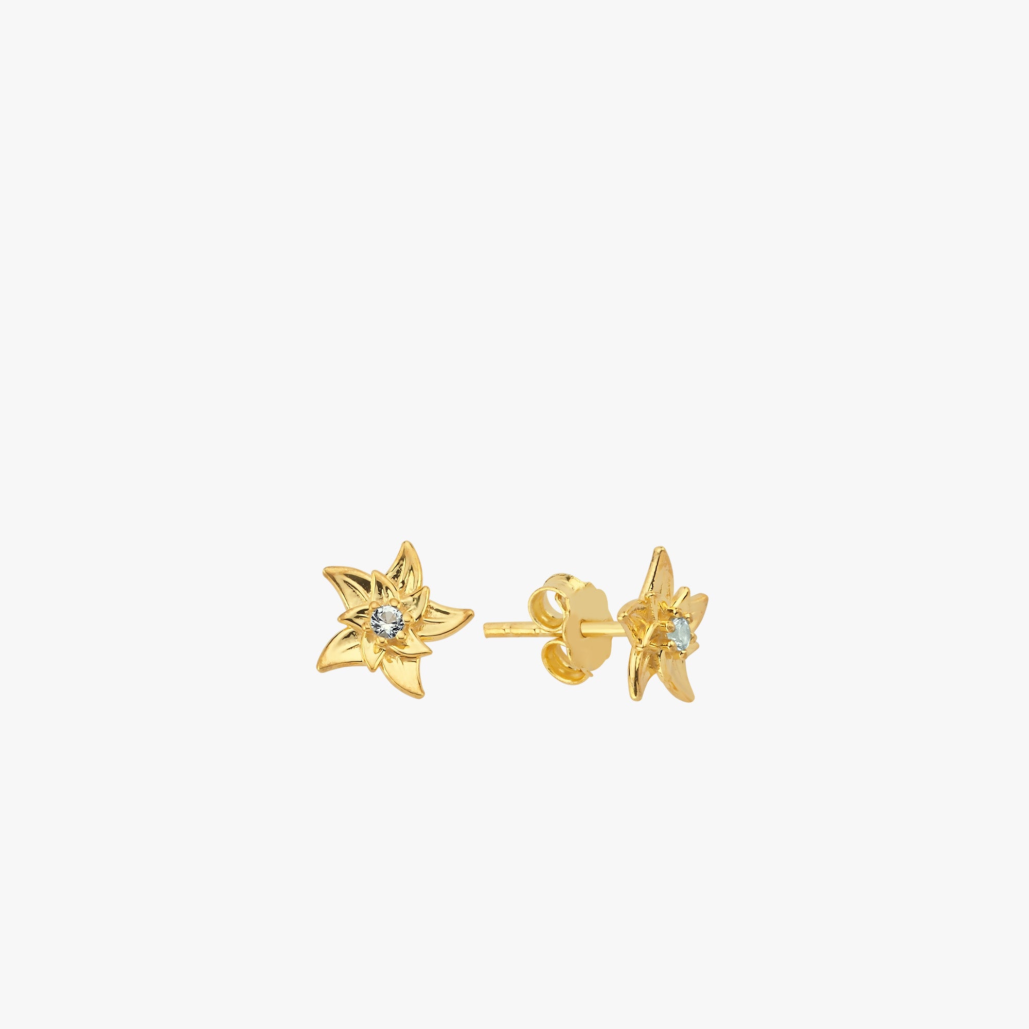 Celebrate March birthdays with our March Birth Flower Earrings, crafted in 18K gold vermeil on sterling silver. Each 0.25-inch stud showcases a finely detailed floral motif with a clear stone center, symbolizing purity, joy, and renewal. A meaningful and elegant accessory for daily wear or a thoughtful birthday gift.