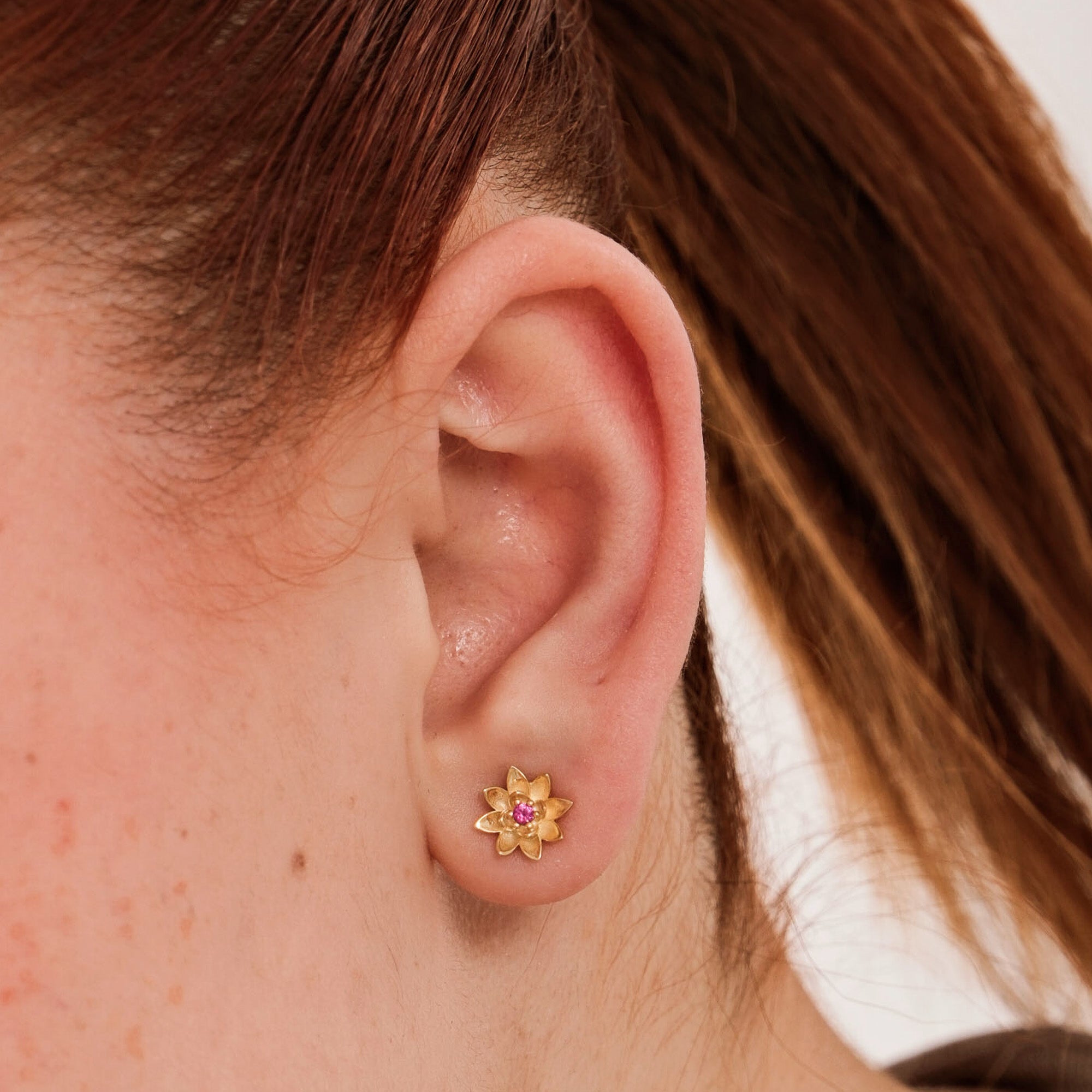 Celebrate July birthdays with our July Birth Flower Earrings, beautifully crafted in 18K gold vermeil on sterling silver. These 0.25-inch studs are shaped like the symbolic larkspur flower and feature a vibrant red stone at the center—representing love, positivity, and strength. A meaningful and elegant gift for everyday wear or special occasions.